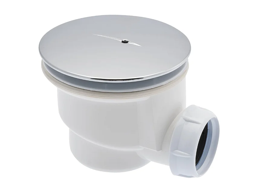 Desagüe de ducha NICOLL de 90 mm con salida horizontal, acabado cromado