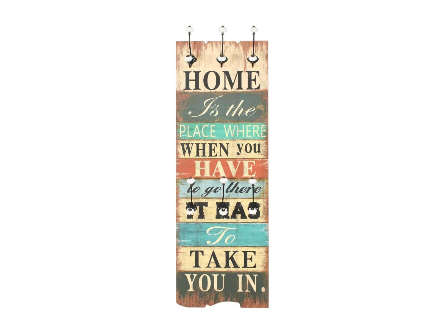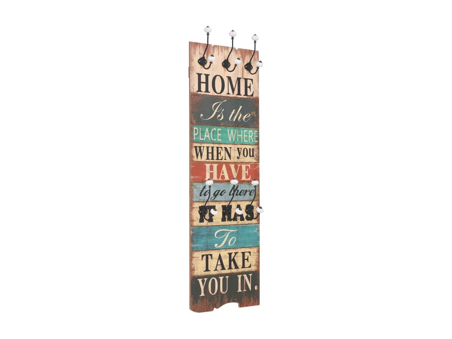 Borghild Perchero de pared HOME IS con 6 ganchos 120x40 cm
