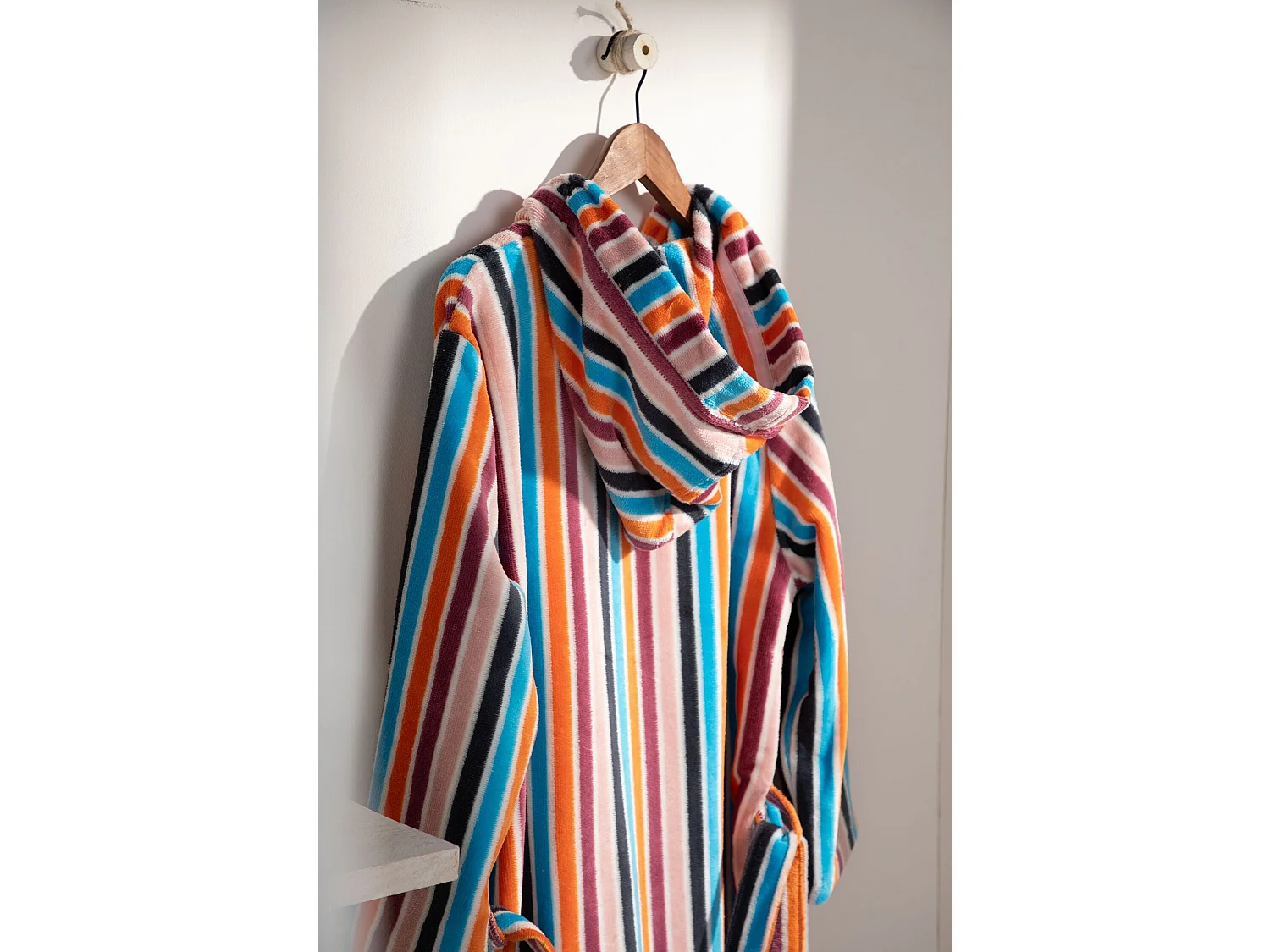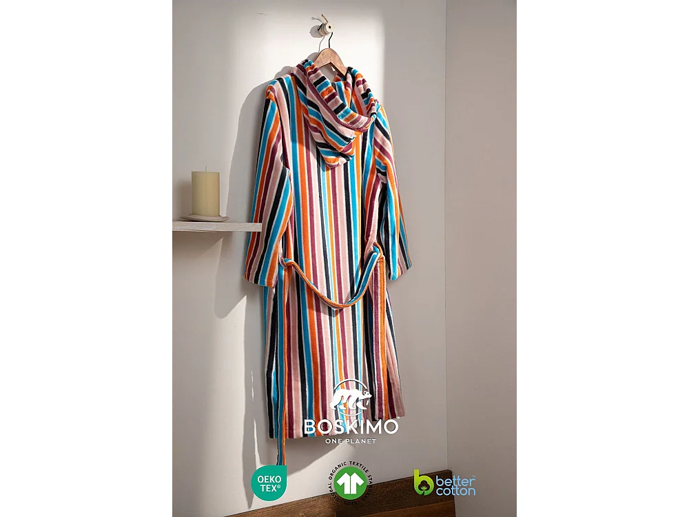 Boskimo Poliana - Albornoz Terciopelo 100% Algodón - A Rayas Negro - S