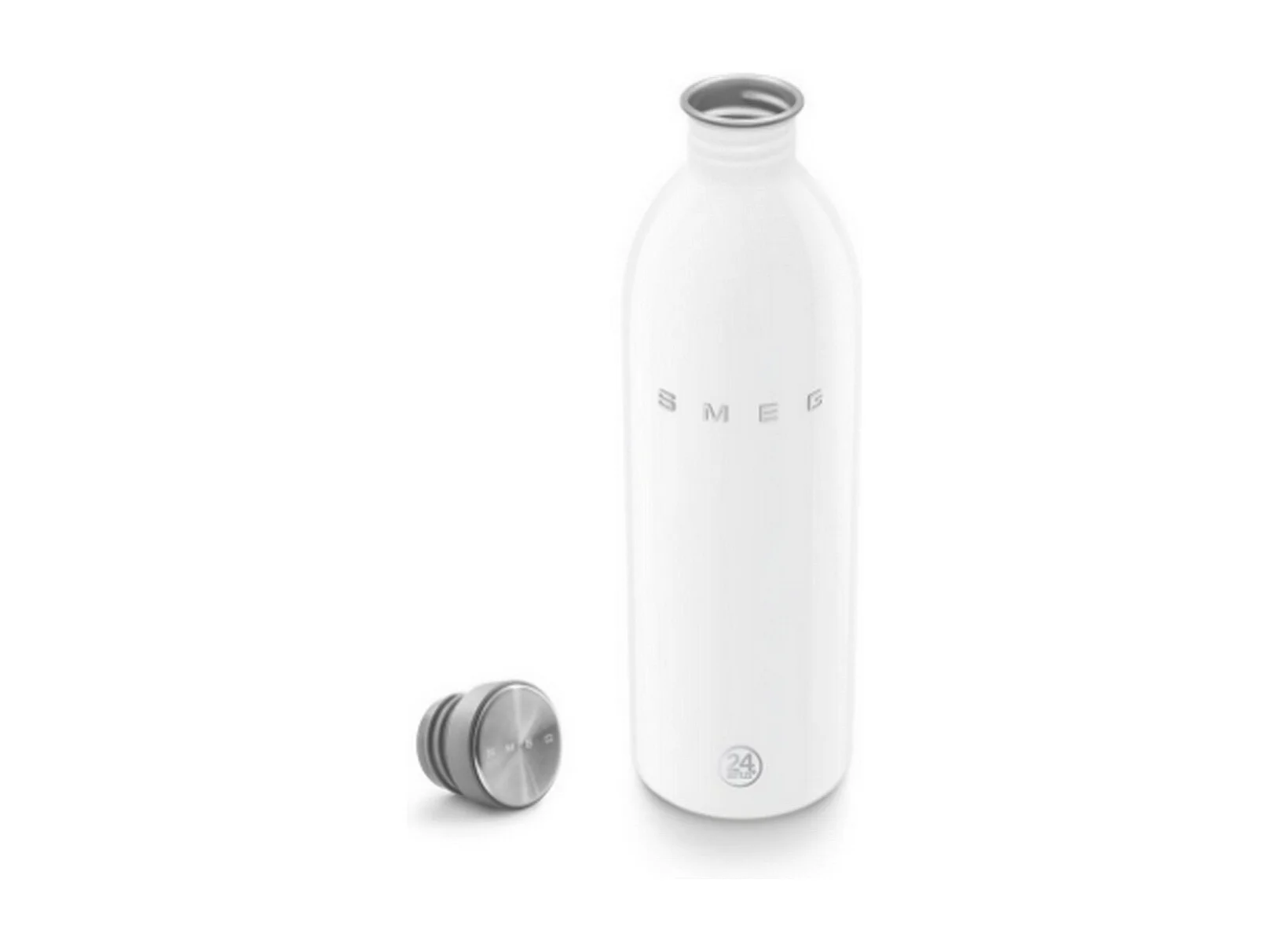 Botella de acero inoxidable SMEG 1L blanca estilo retro años 50, tapa hermética, acero inoxidable 18/8, ligera y duradera