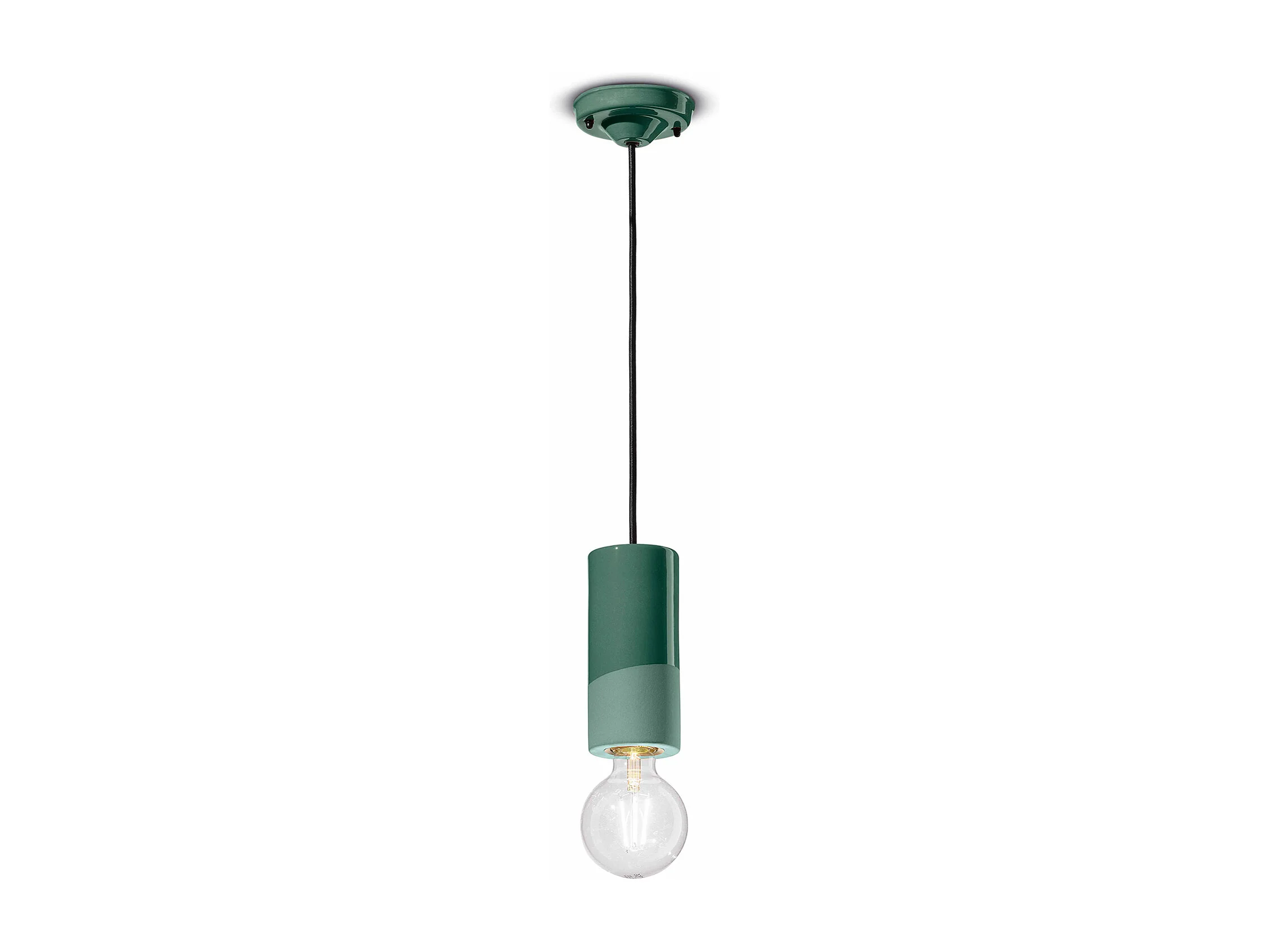 Sospensione Media Vintage Decò Pi Ceramica Verde Bottiglia 1 Luce E27