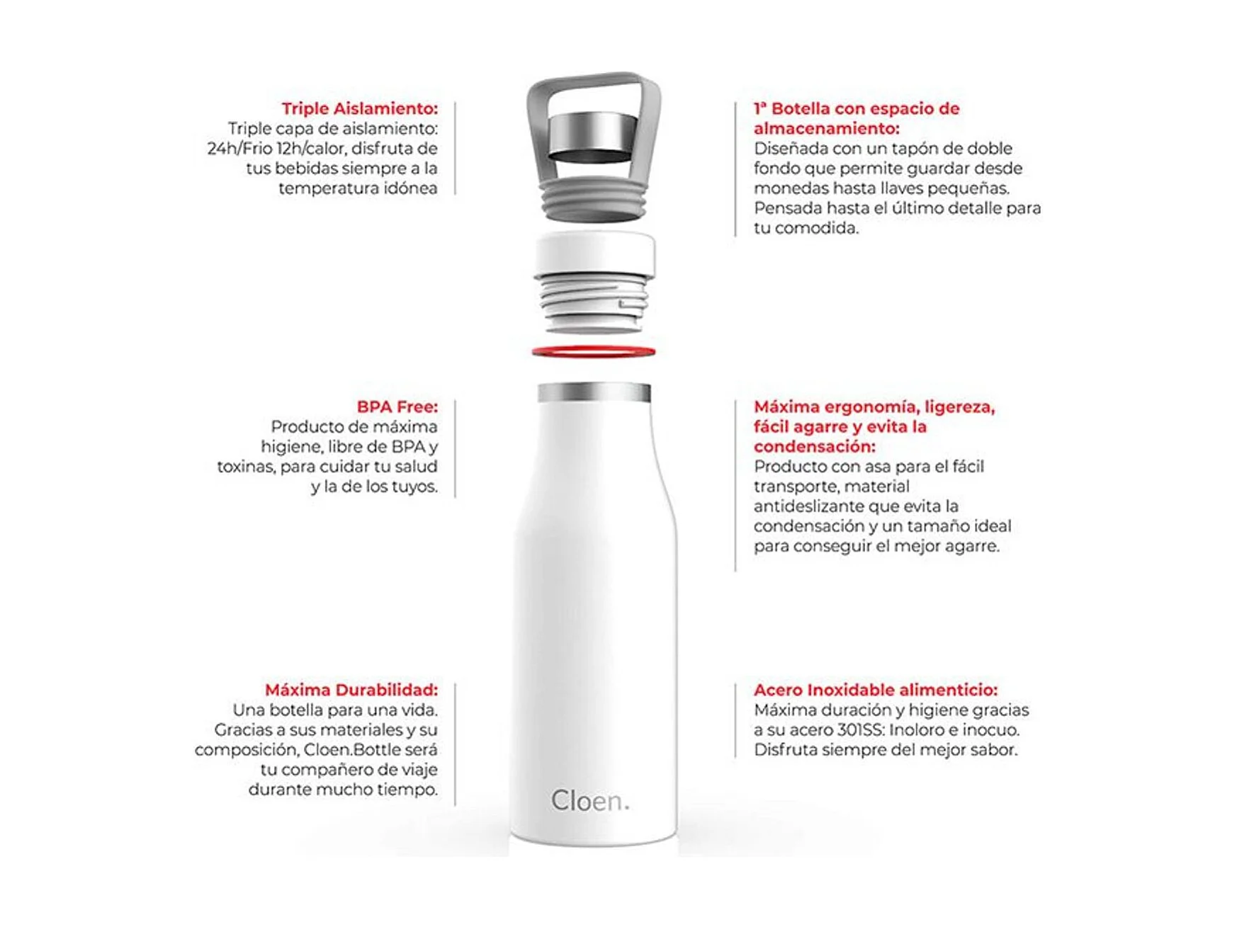 Botella térmica Cloen triple capa de aislamiento 500 ml blanco