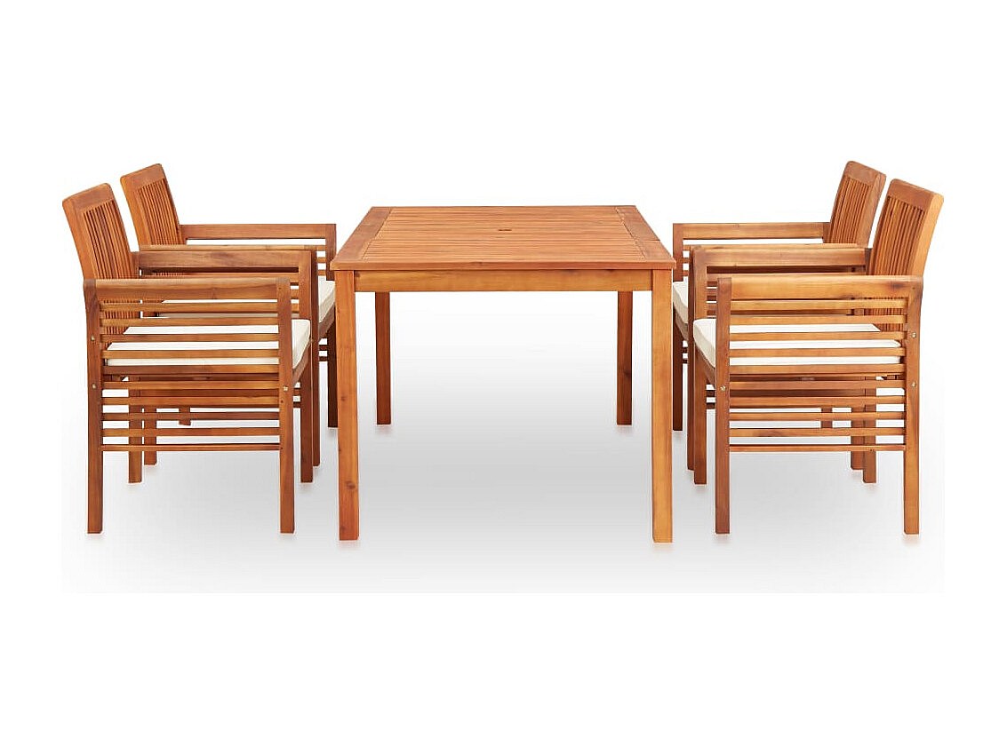 Bourges Set comedor de jardín 5 pzas y cojines madera maciza de acacia