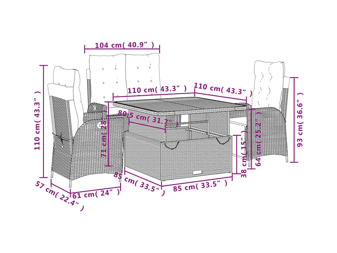Margot Set comedor de jardín 2 pzas con cojines ratán sintético beige