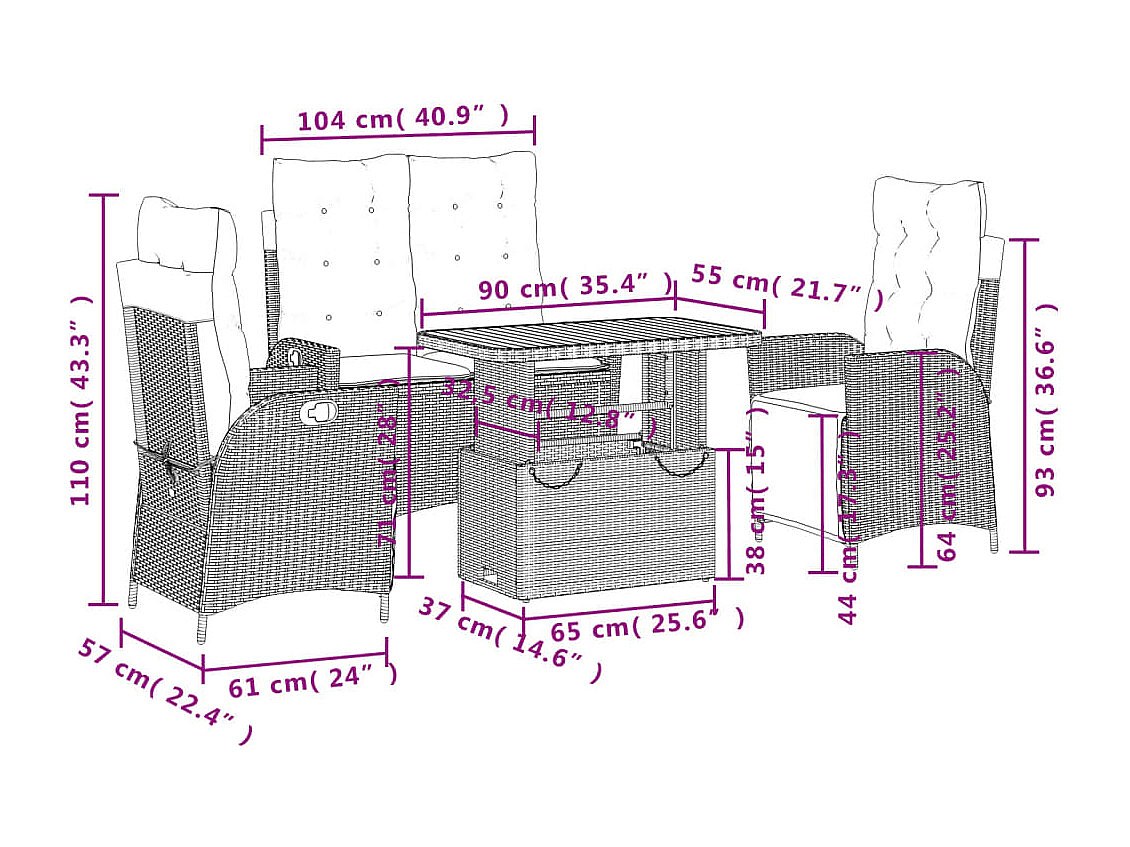 Conjunto de mesa y sillas para jardín