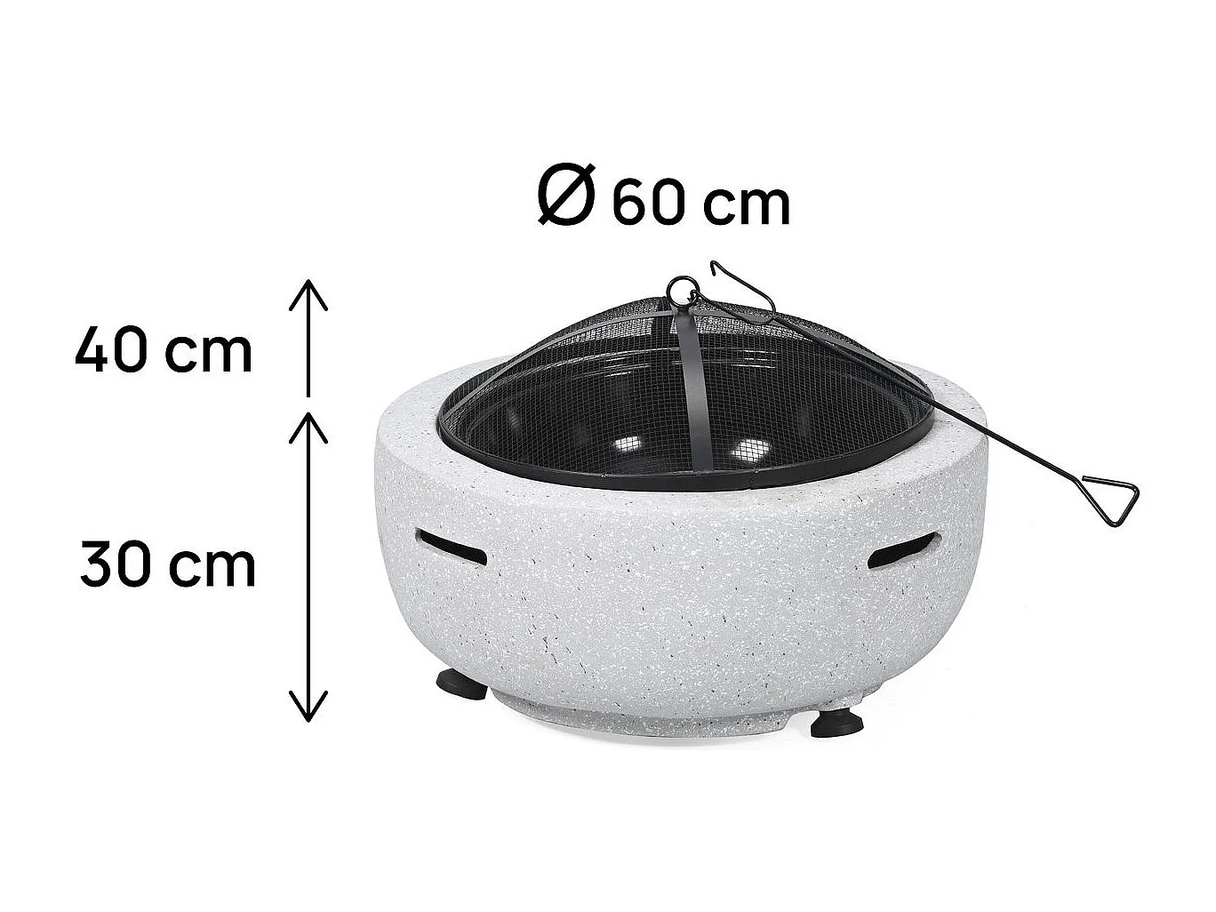 Brasero Barbacoa 2 en 1 "Torro" en Piedra Blanca 70x70x49 cm con Tapa y Atizador