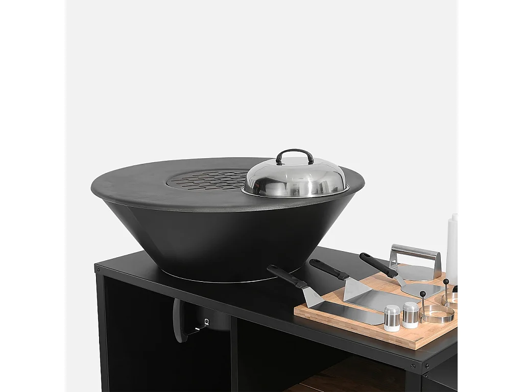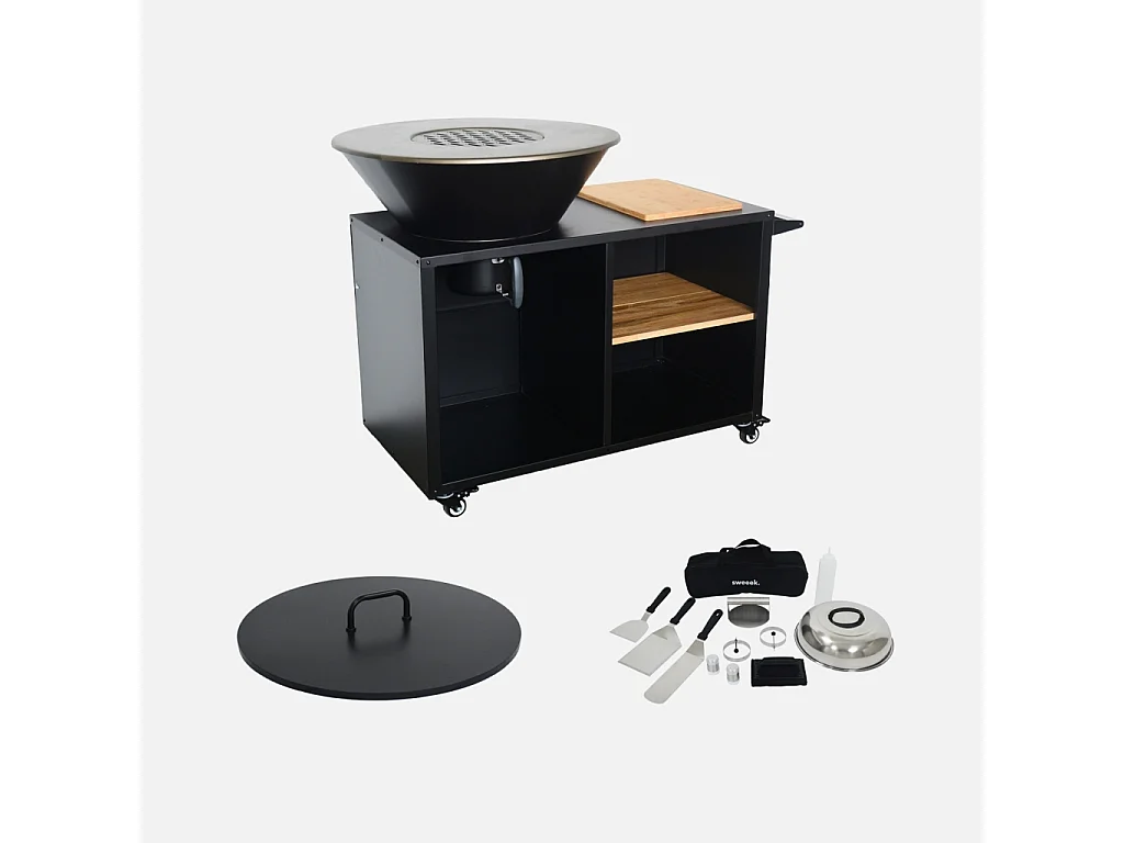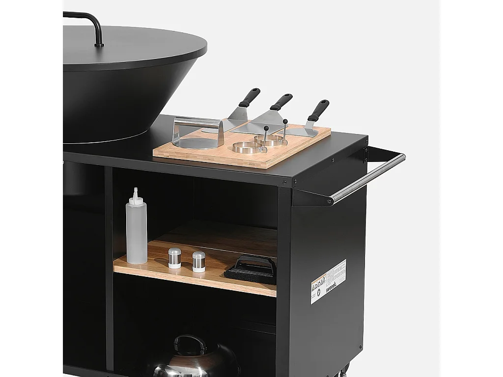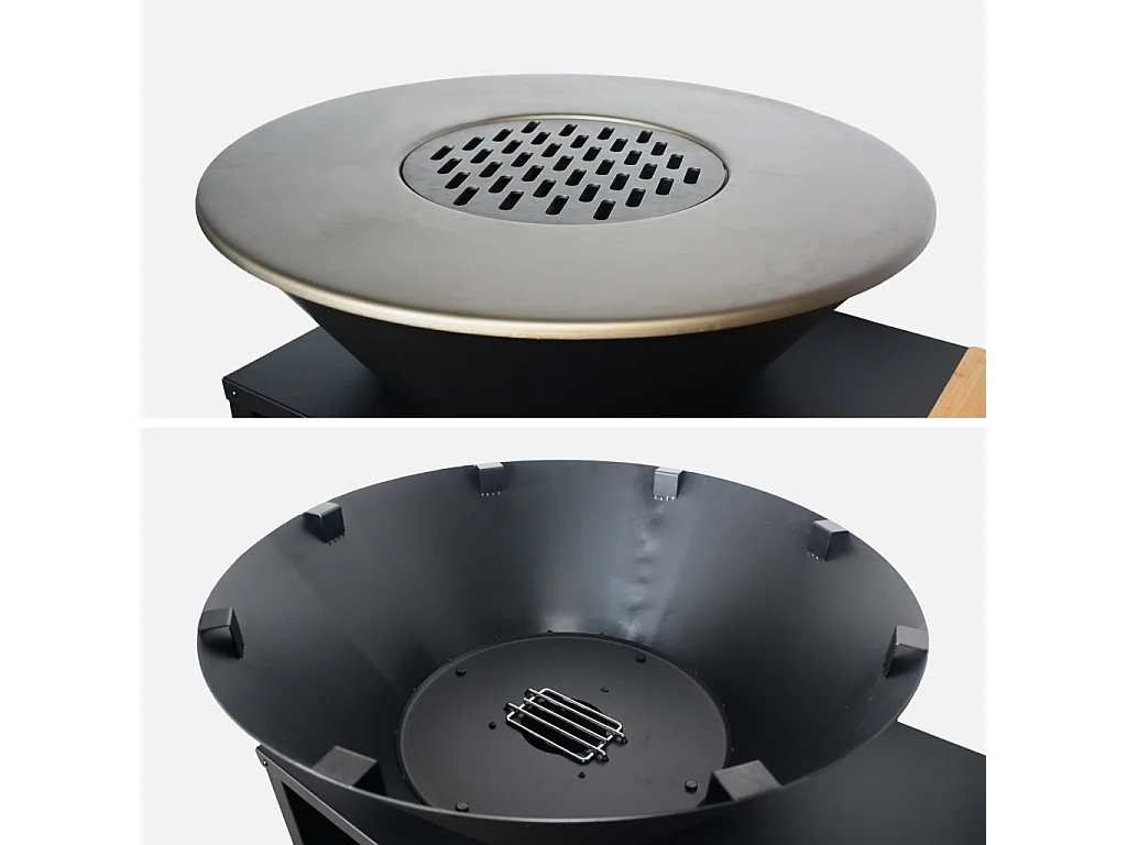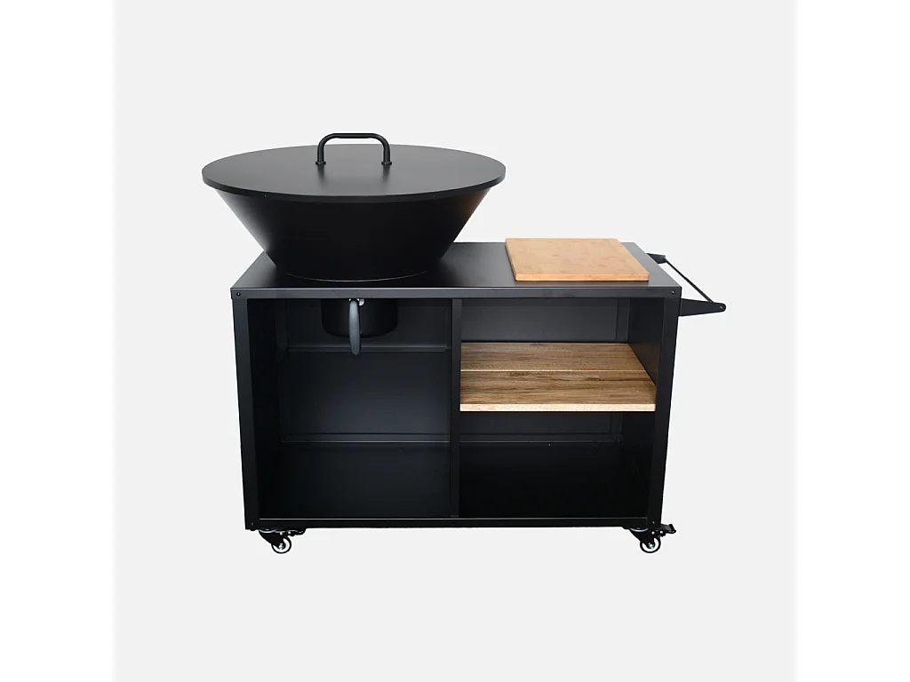 Brasero barbacoa, carrito con espacios de almacenamiento, tapa y