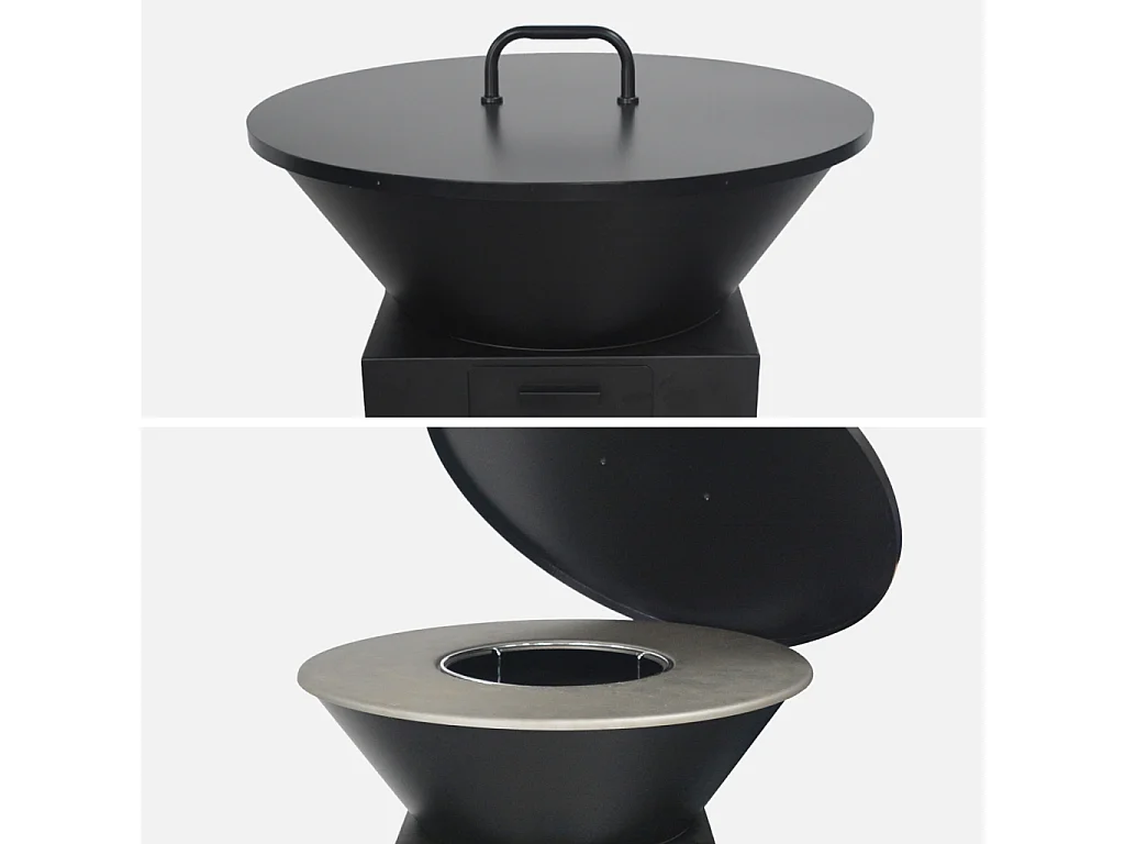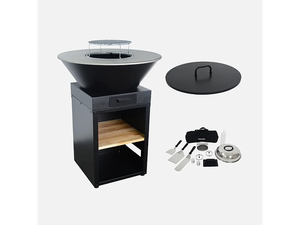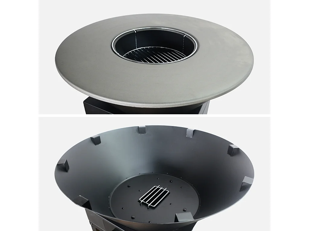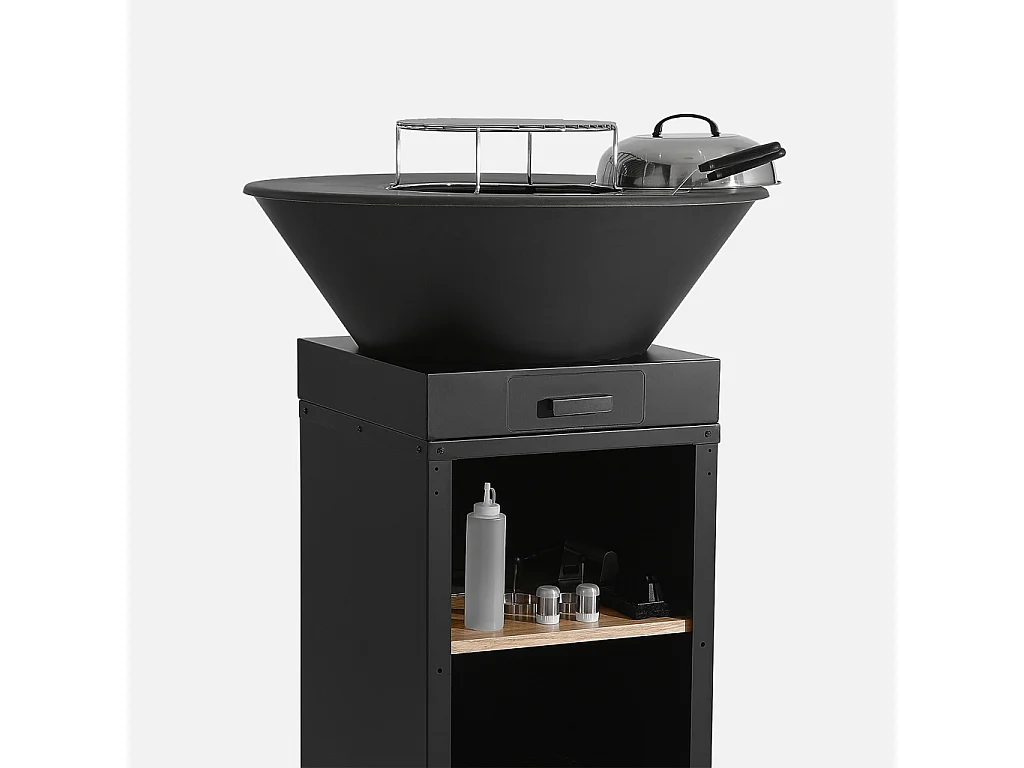 Brasero barbacoa con parrilla de cocción, espacio de almacenamiento,