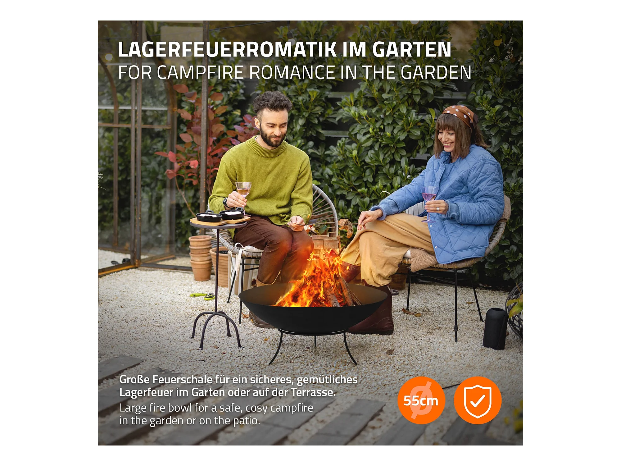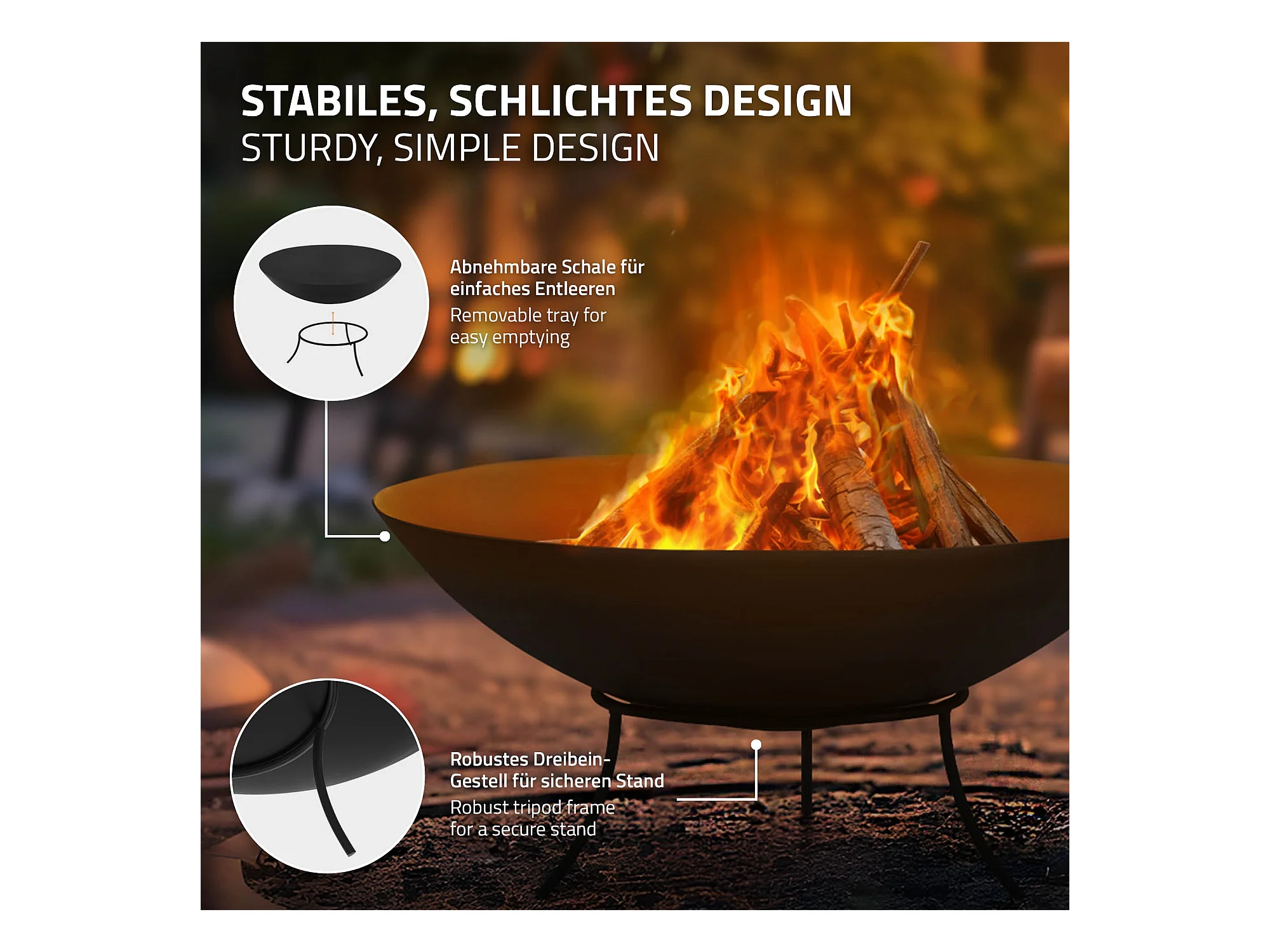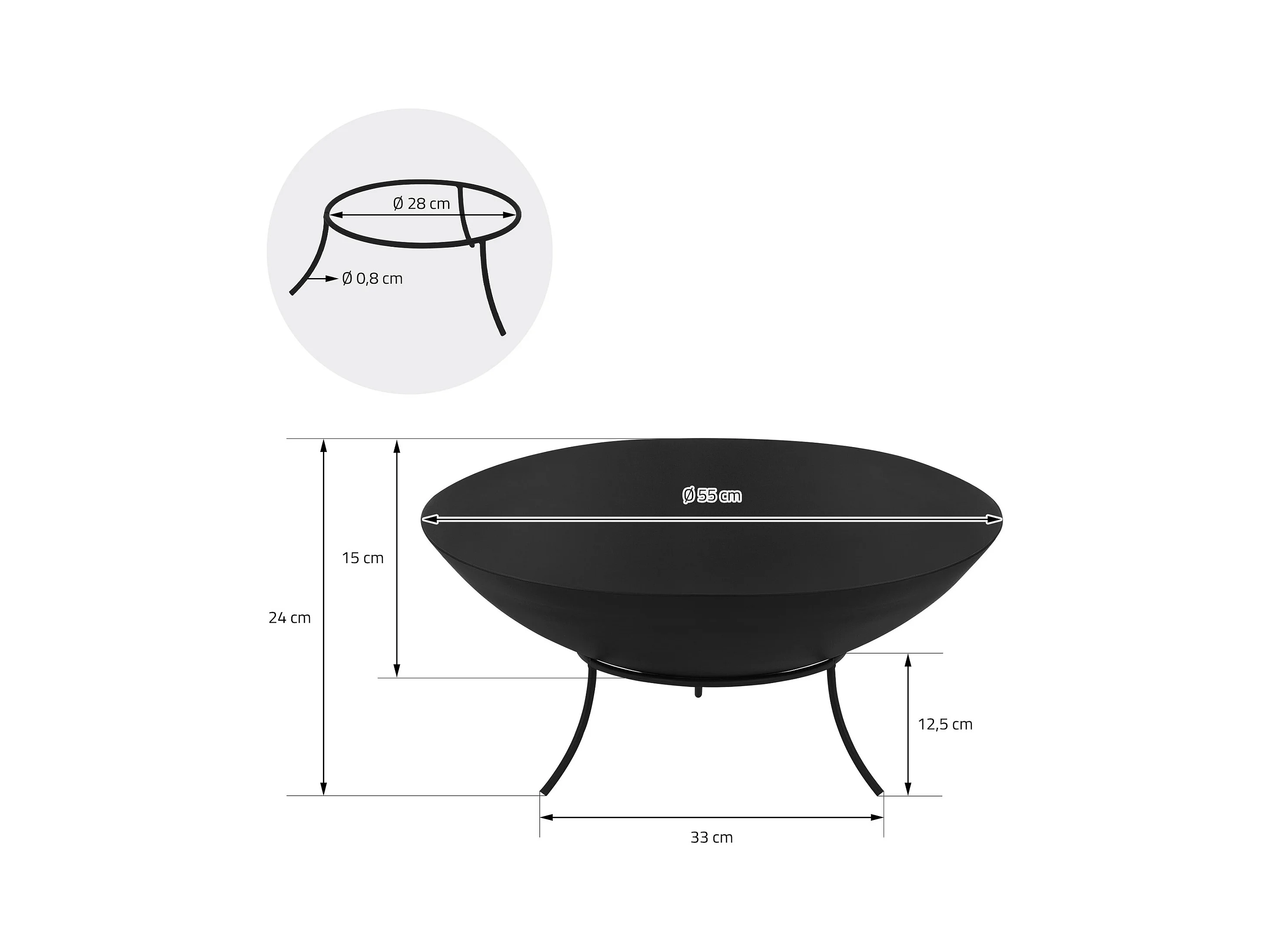 Brasero de acero basero negro con 3 patas para barbacoa Ø 55 x 24 cm