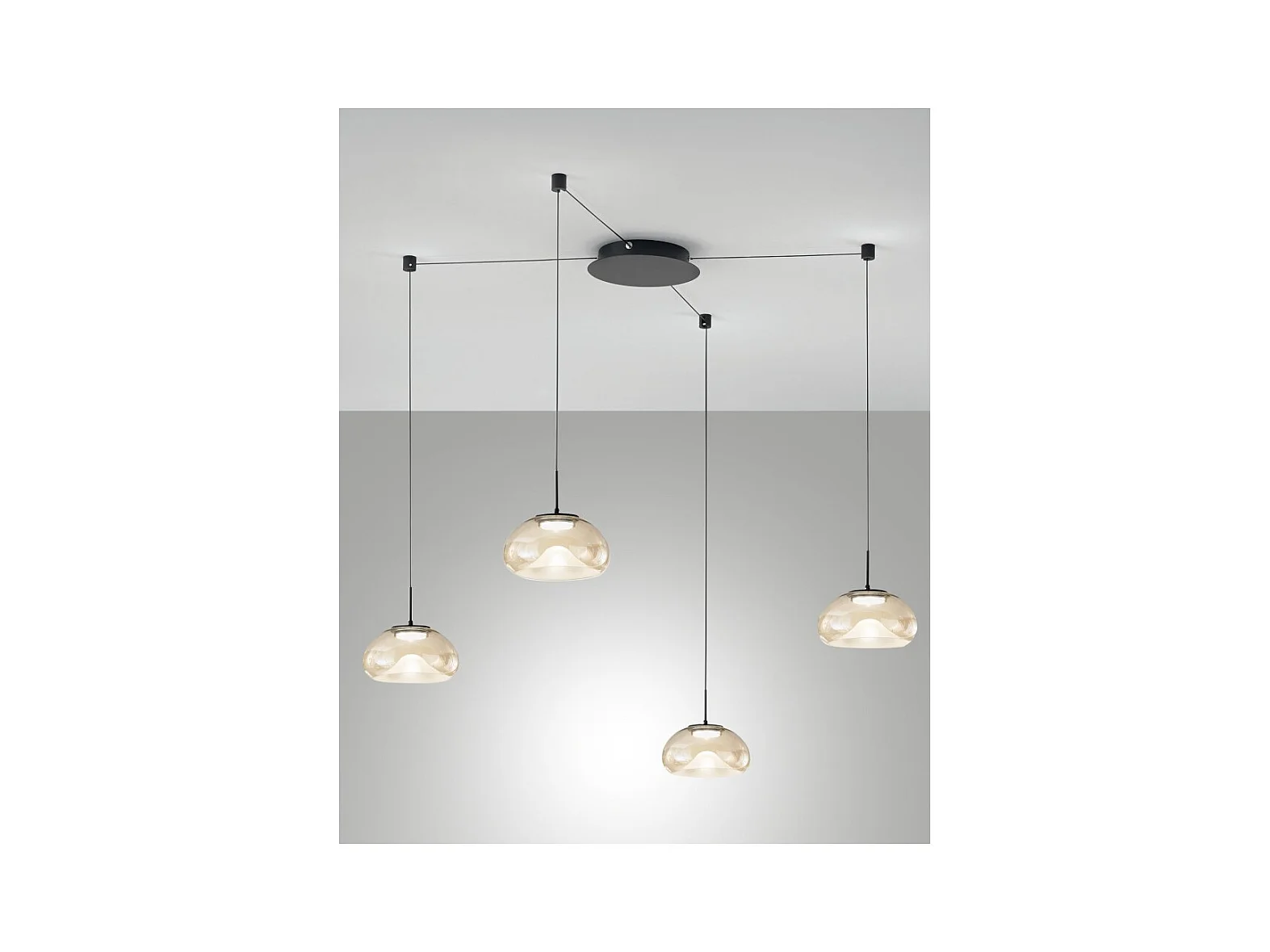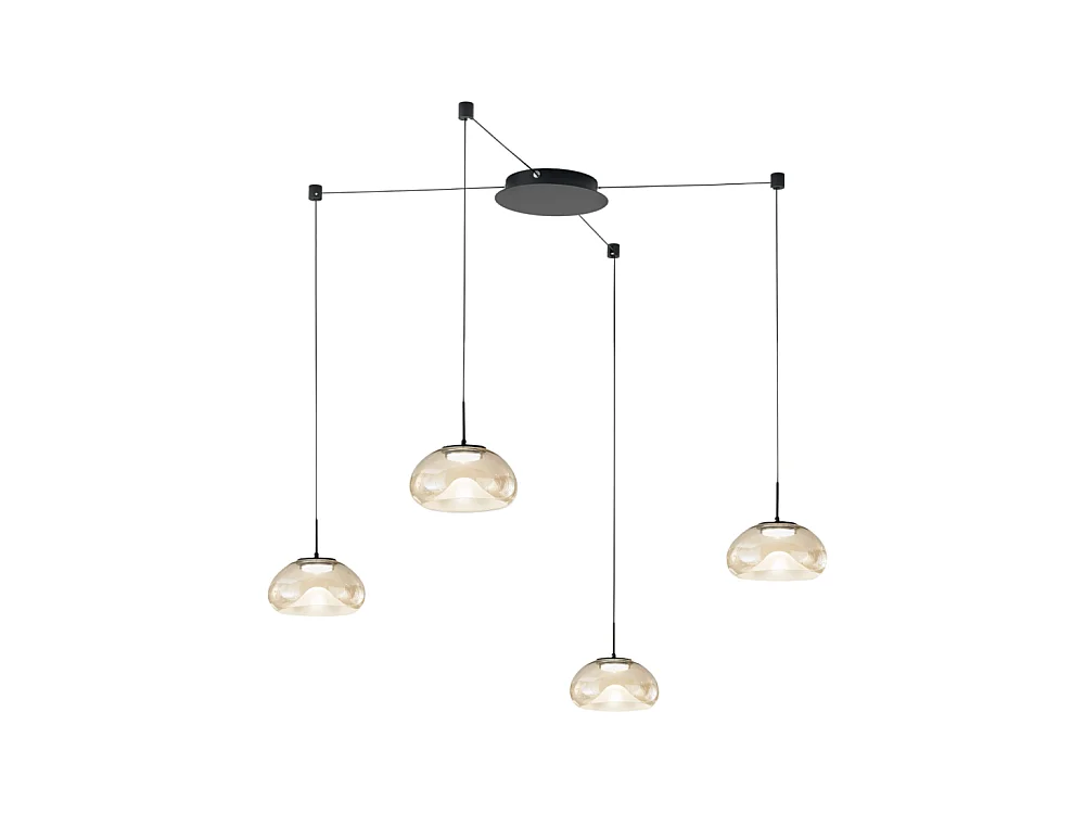 Brena - Lámpara colgante descentralizada de 4 luces color coñac - Fabas Luce - LED regulable de 40 W - Montaje descentralizado