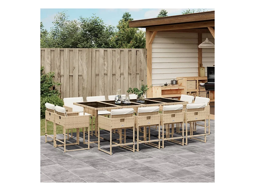 Emilia Set comedor de jardín con cojines 13 pzas ratán sintético beige