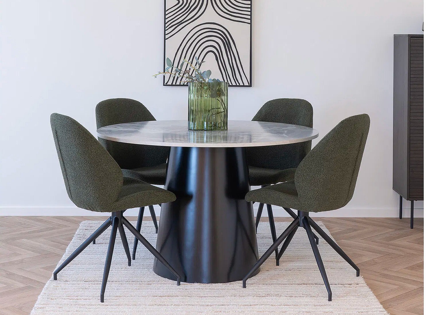 BRITO ronde eettafel Ø120 – Marmereffect & zwart metaal