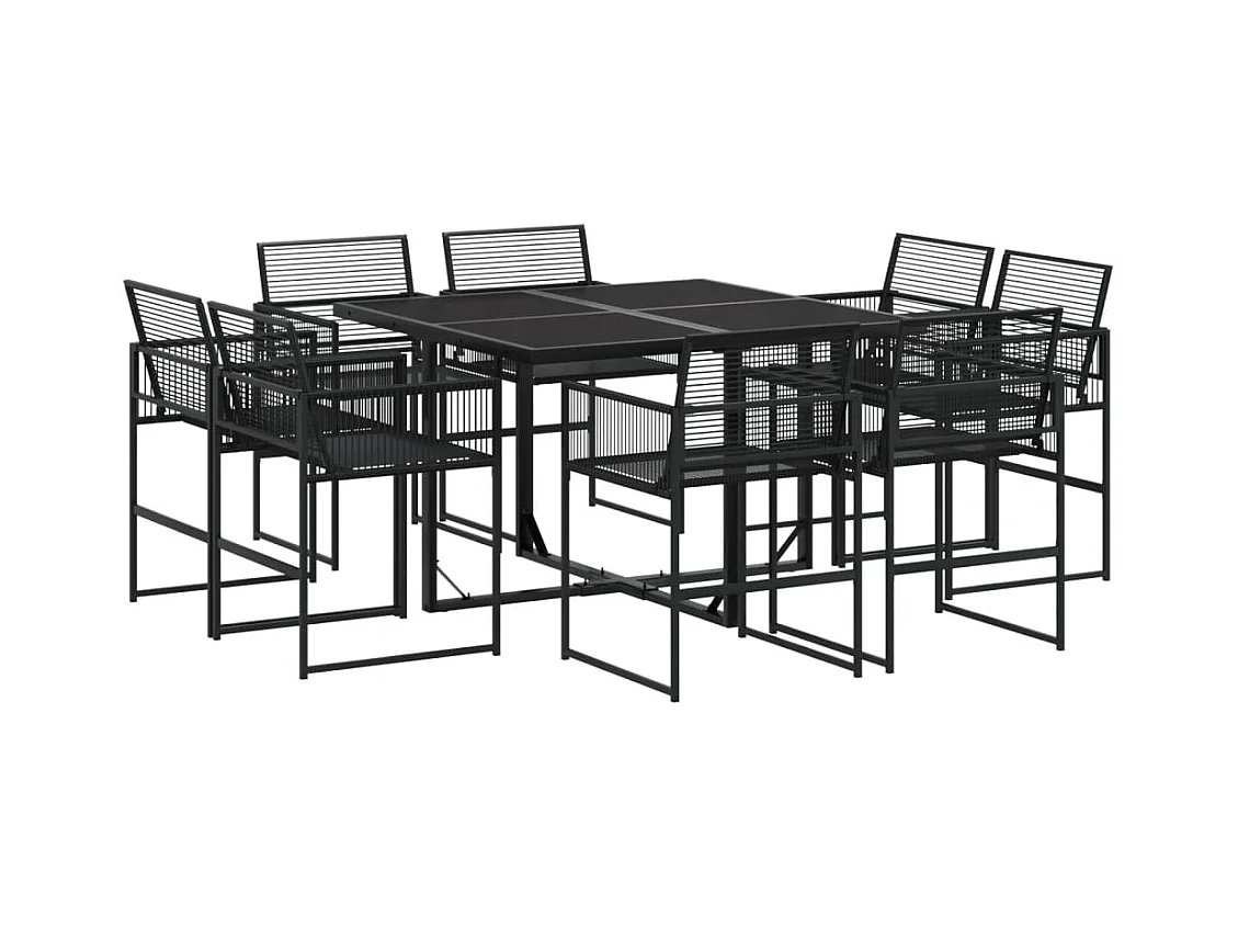 Vynne Set de comedor de jardín 9 pzas y cojines ratán sintético negro