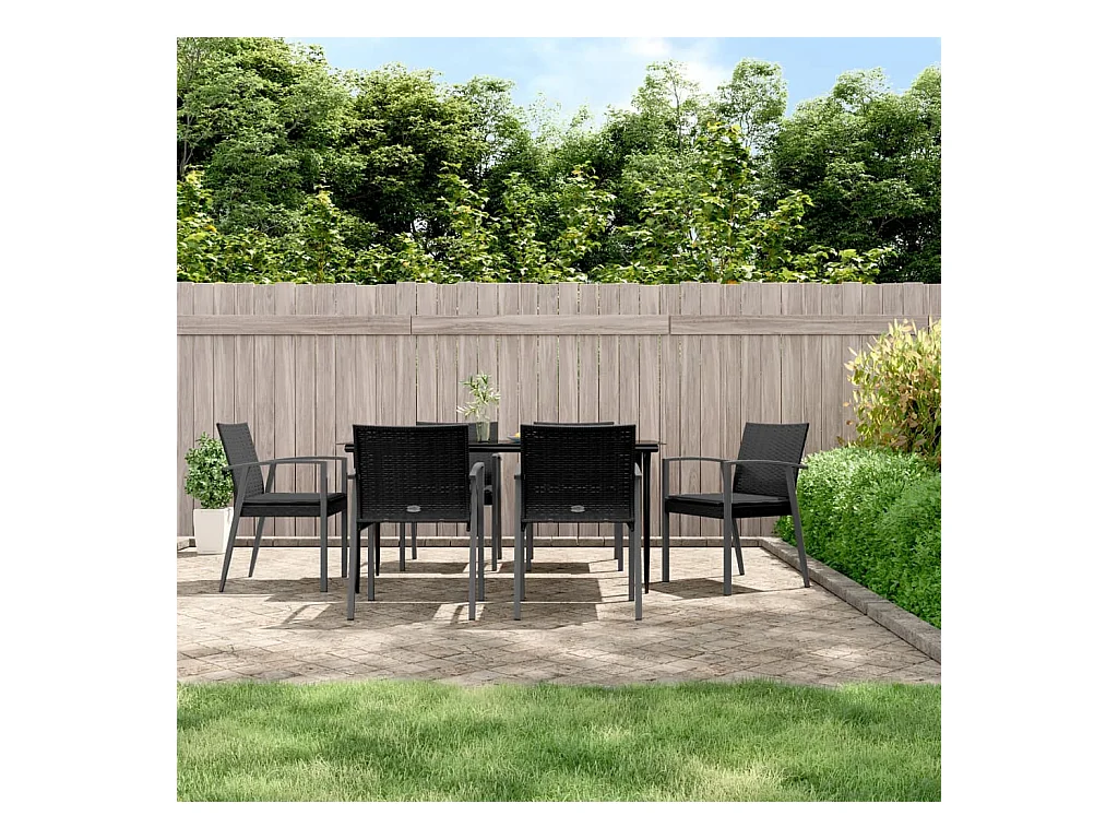 Jarlik Juego de comedor de jardín 7 piezas ratán sintético negro