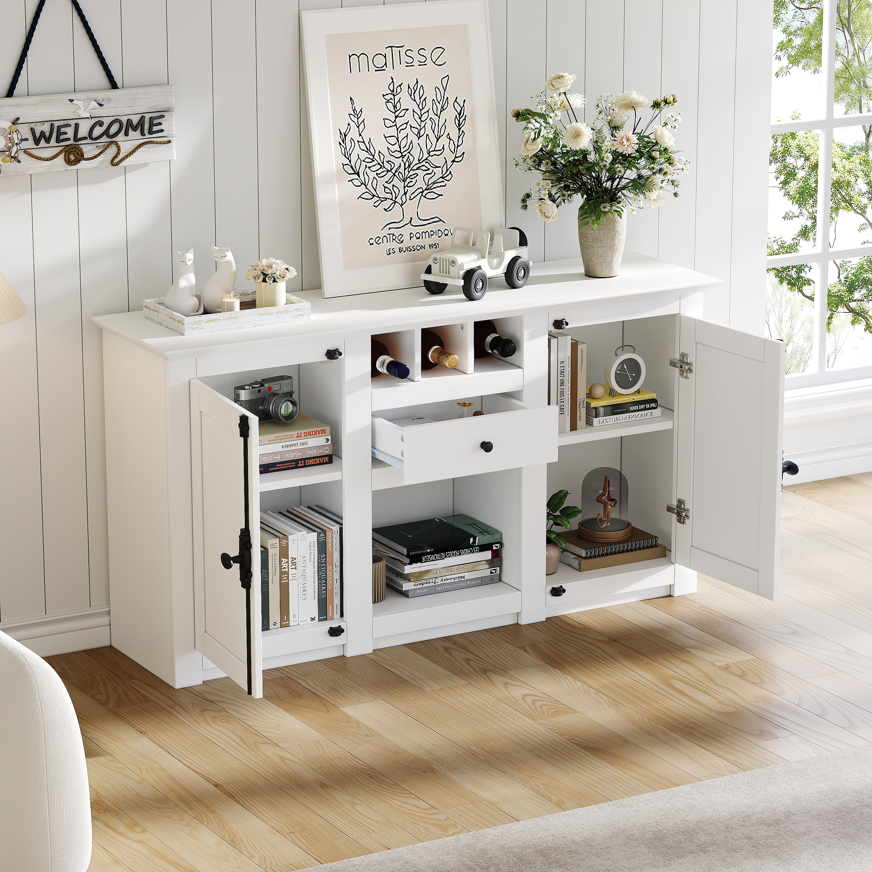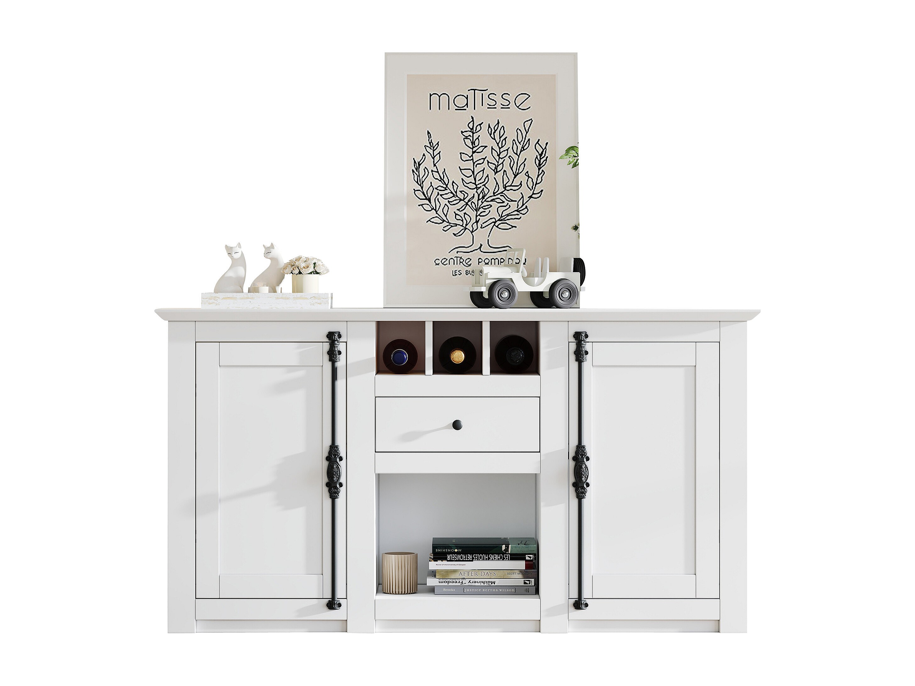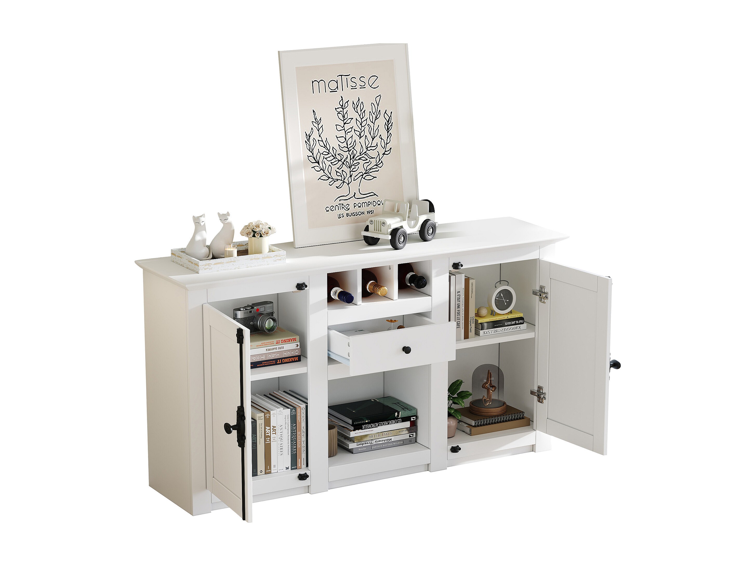 Buffet 130x35x70 cm - 2 puertas y 1 cajón - con portavinos - Espacio de almacenamiento semiabierto - diseño retro - Blanco