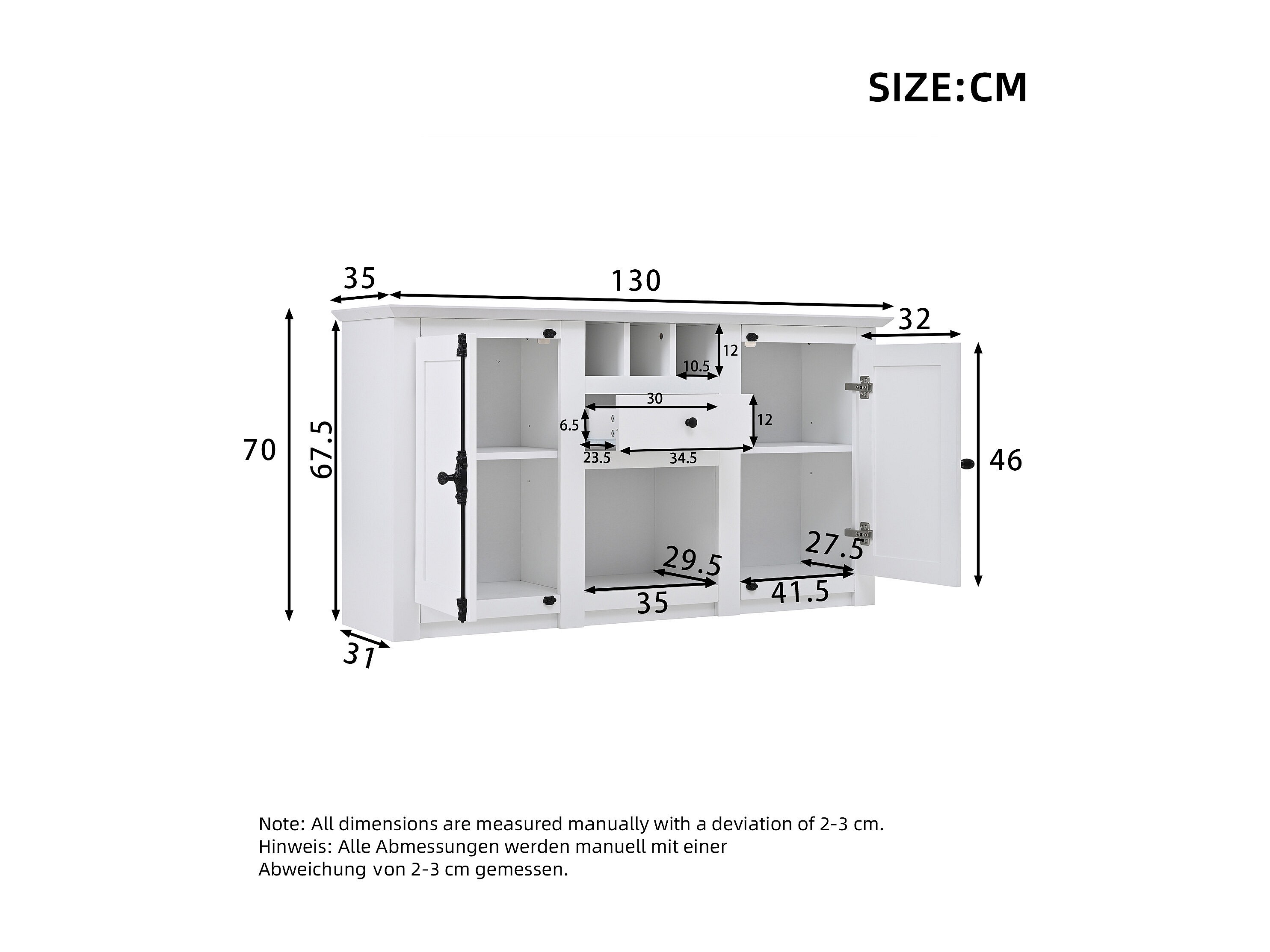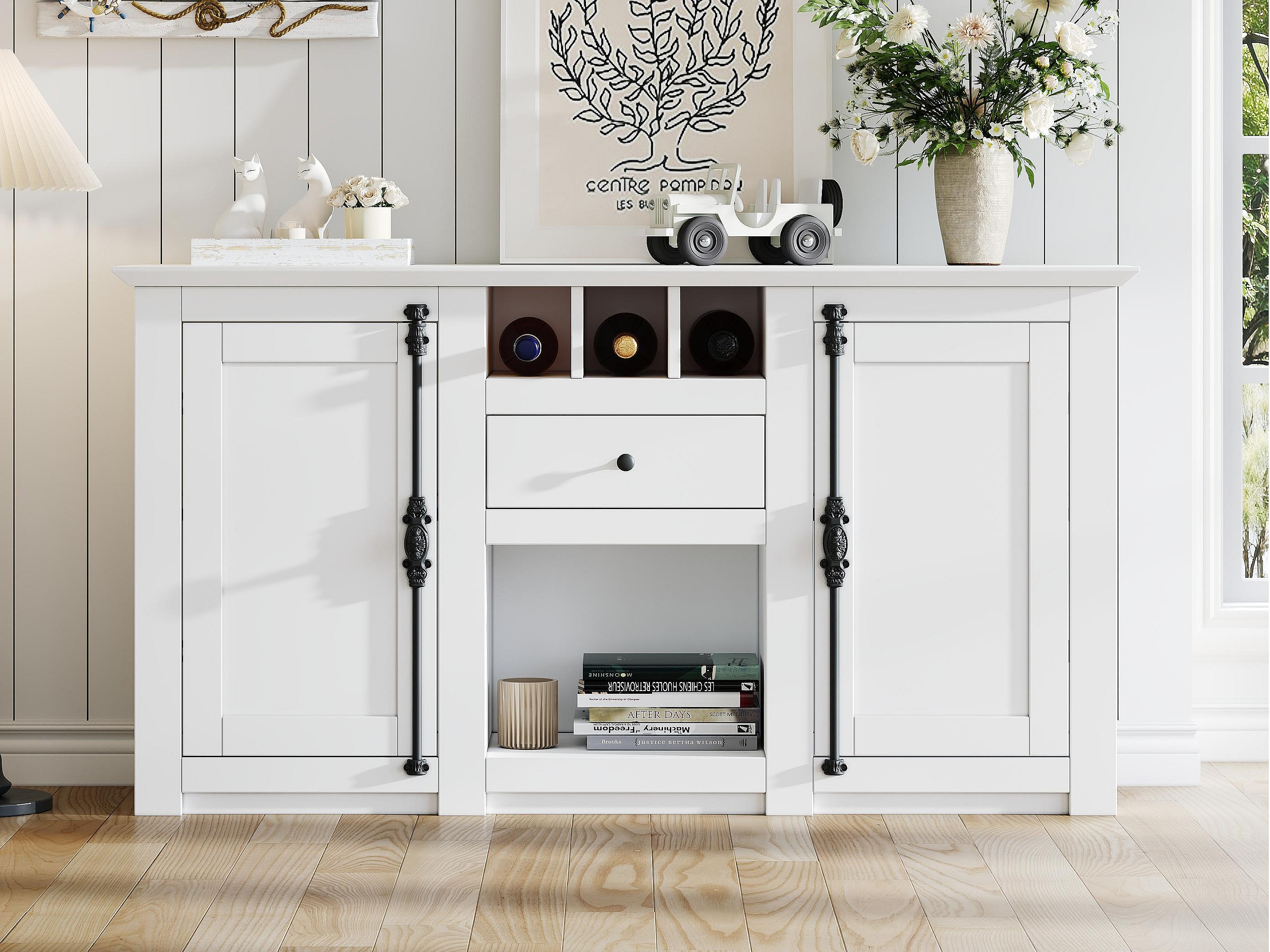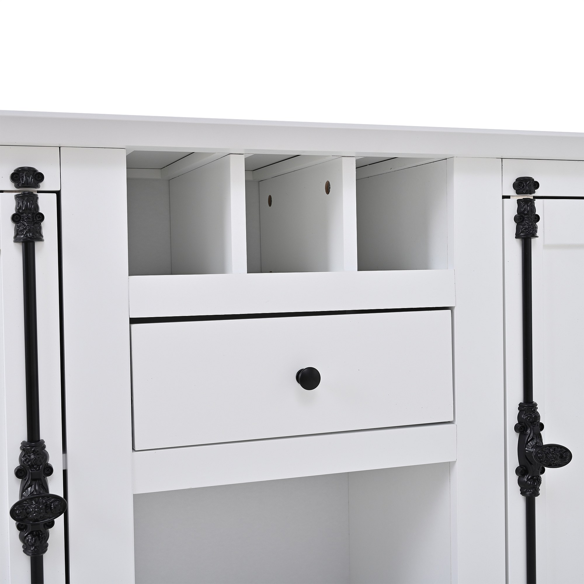 Buffet 130x35x70 cm - 2 puertas y 1 cajón - con portavinos - Espacio de almacenamiento semiabierto - diseño retro - Blanco