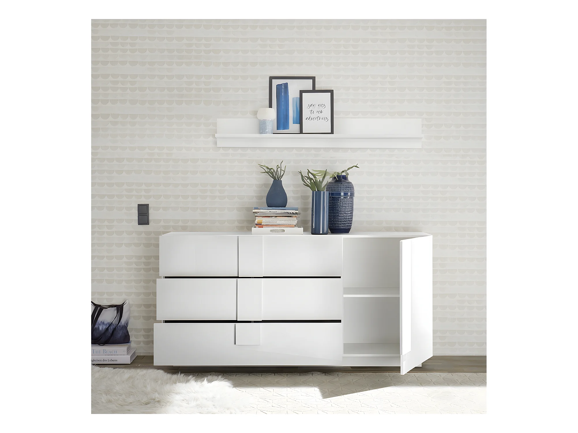 Aparador de diseño blanco 144x86x40cm Alama