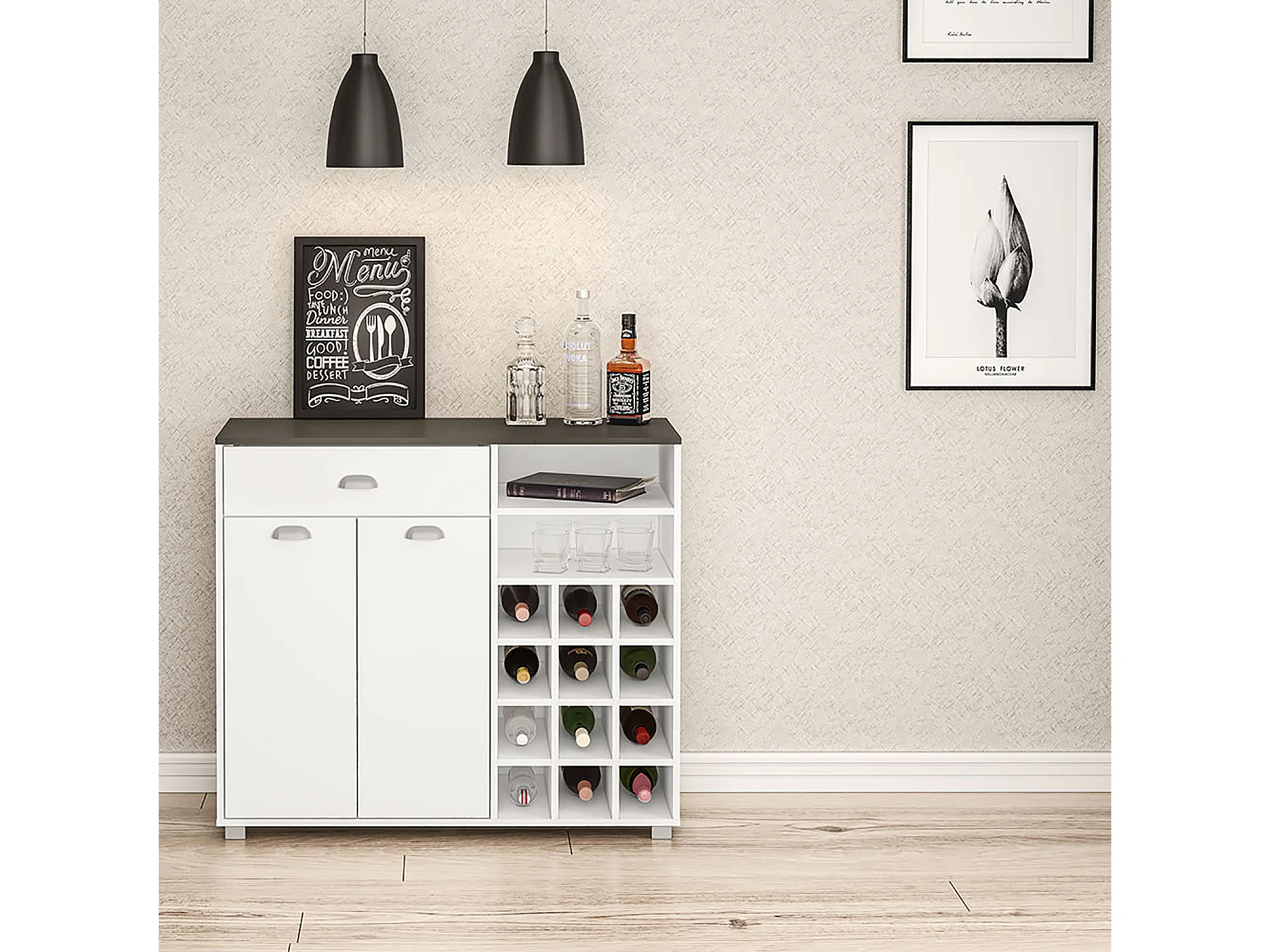 Buffet asfeld 2 botellero blanco