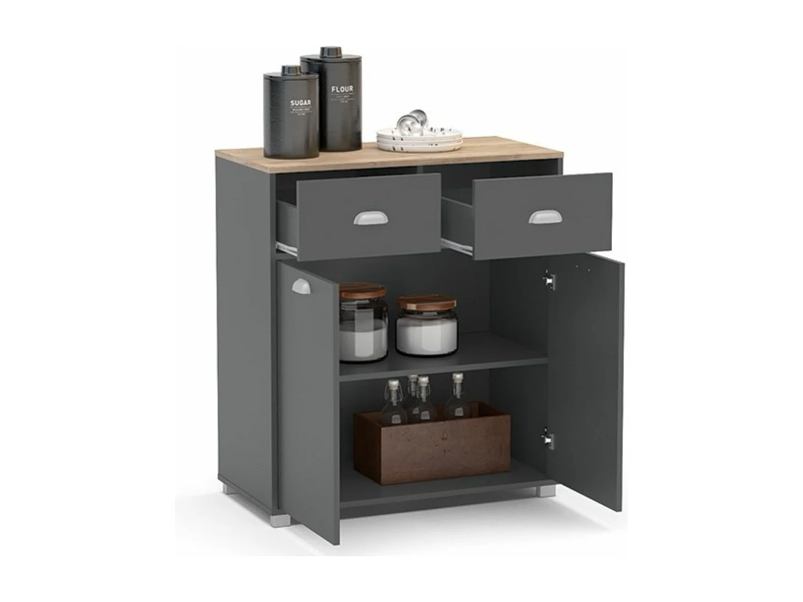 Aparador con cajones y puertas gris hormigón 70,5x34x74,5 cm