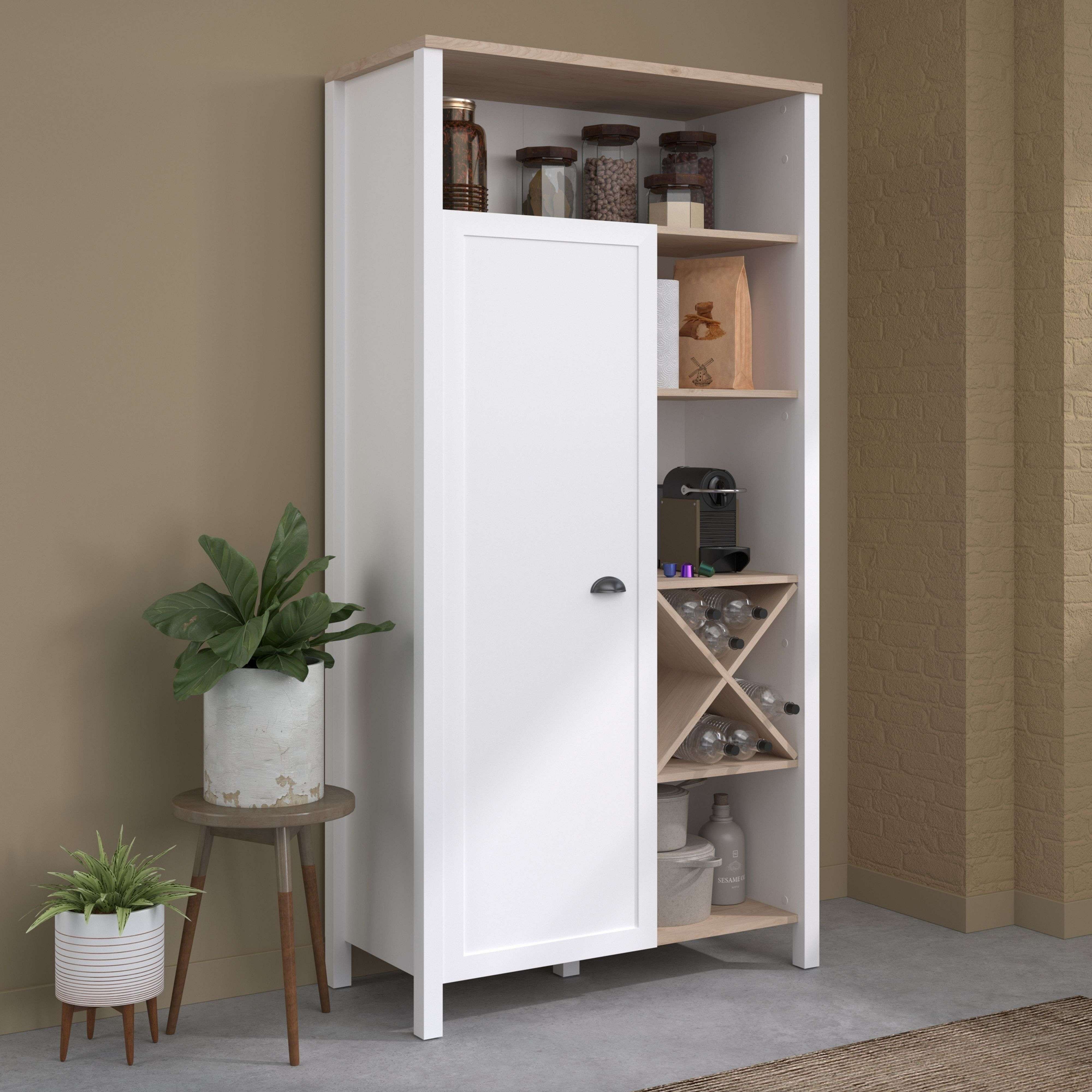 Buffet Cocina Coper Botellero 1 Puerta 9 Estantes Blanco/Roble 95x185 cm
