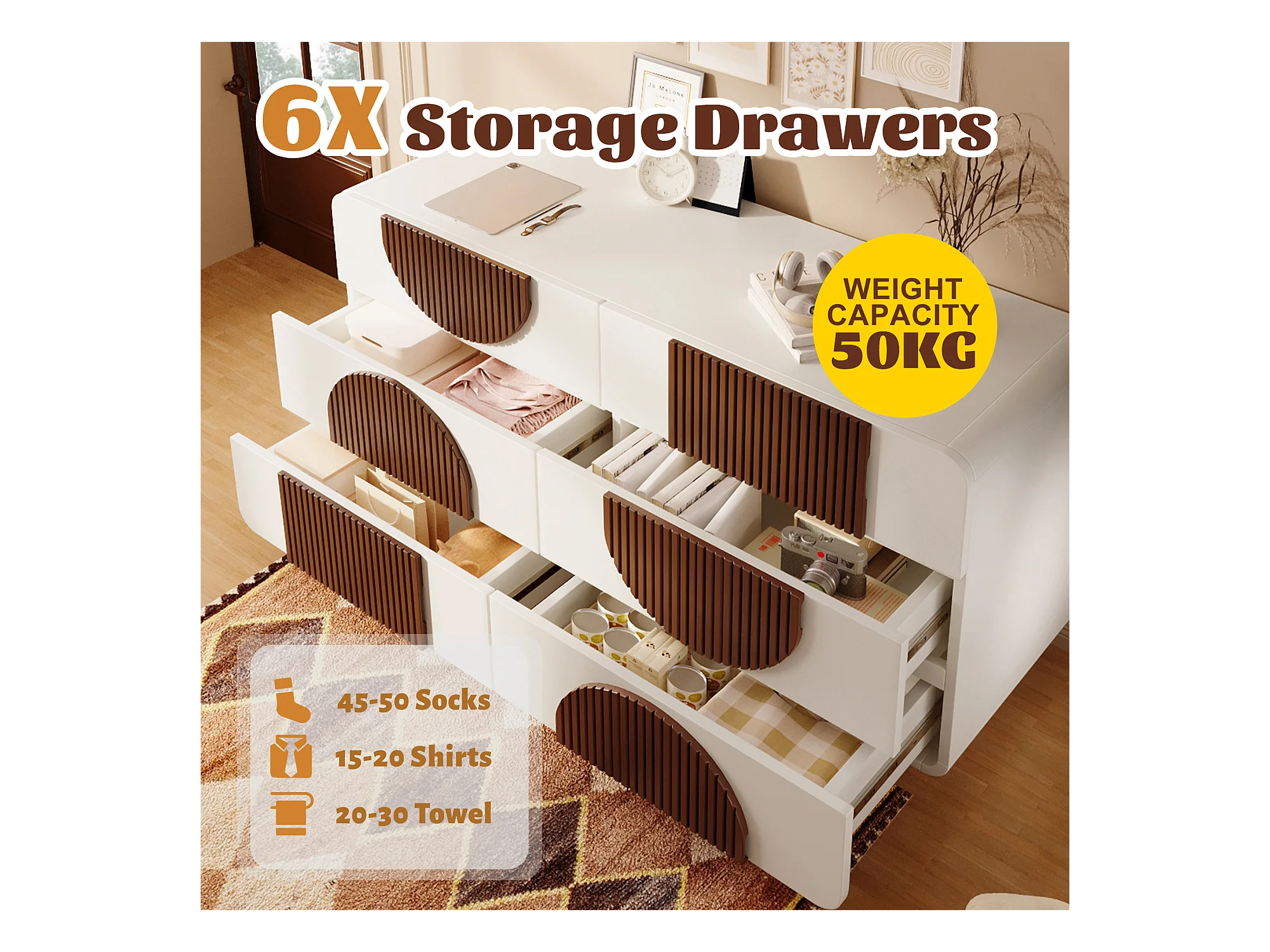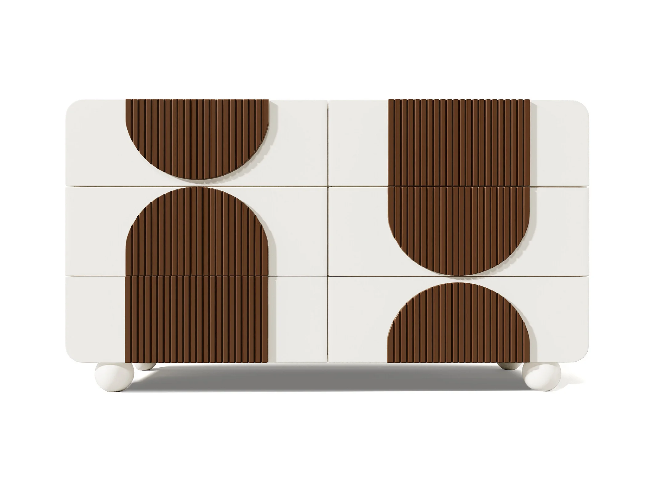 Buffet moderno 121x41x71cm - con 6 cajones deslizantes silenciosos - diseño geométrico - con listones de madera color marrón chocolate - Blanco + Marrón