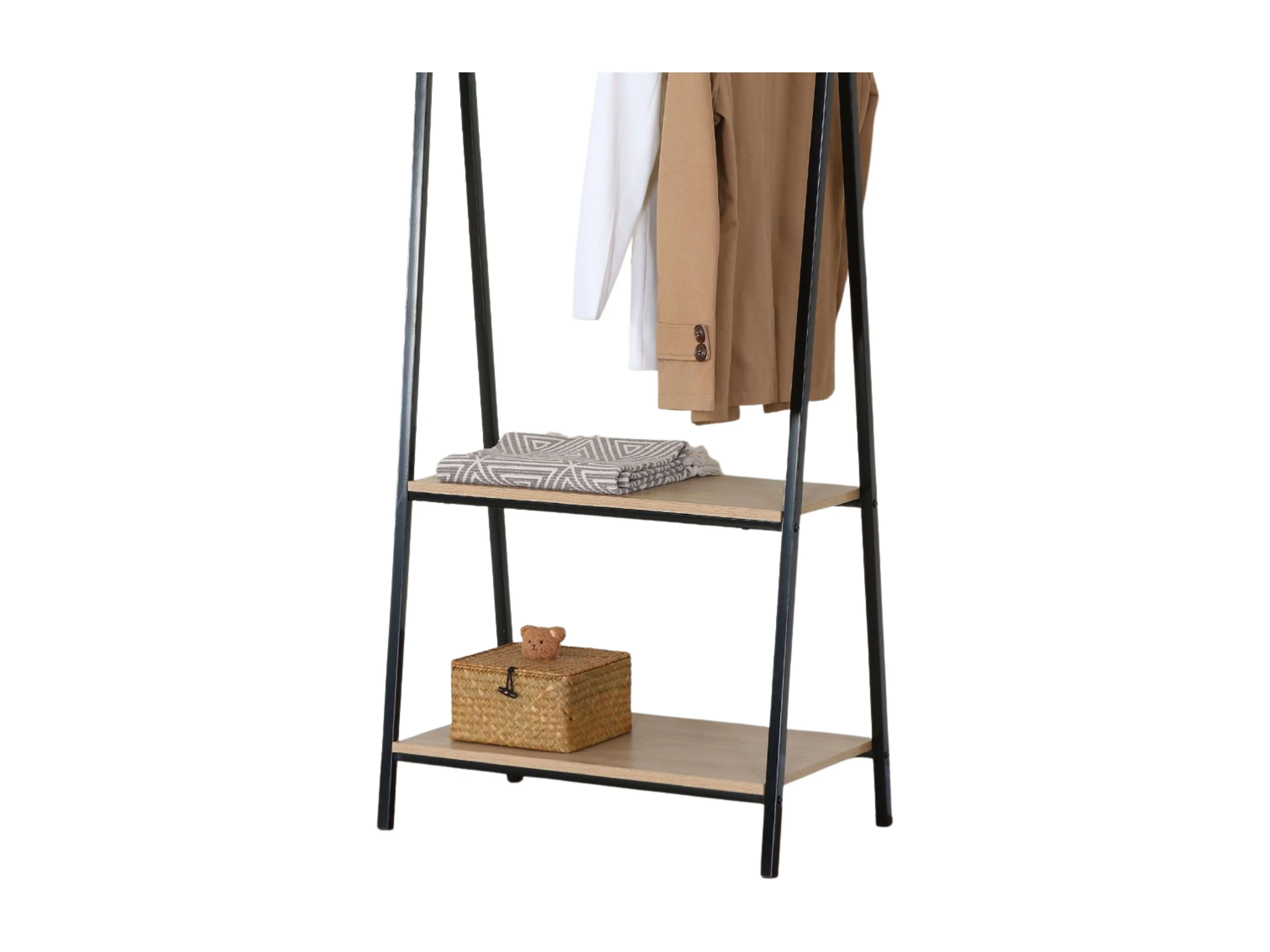 Burro de ropa 2 estantes melamina y metal roble cambrian negro 64x150x40 cm