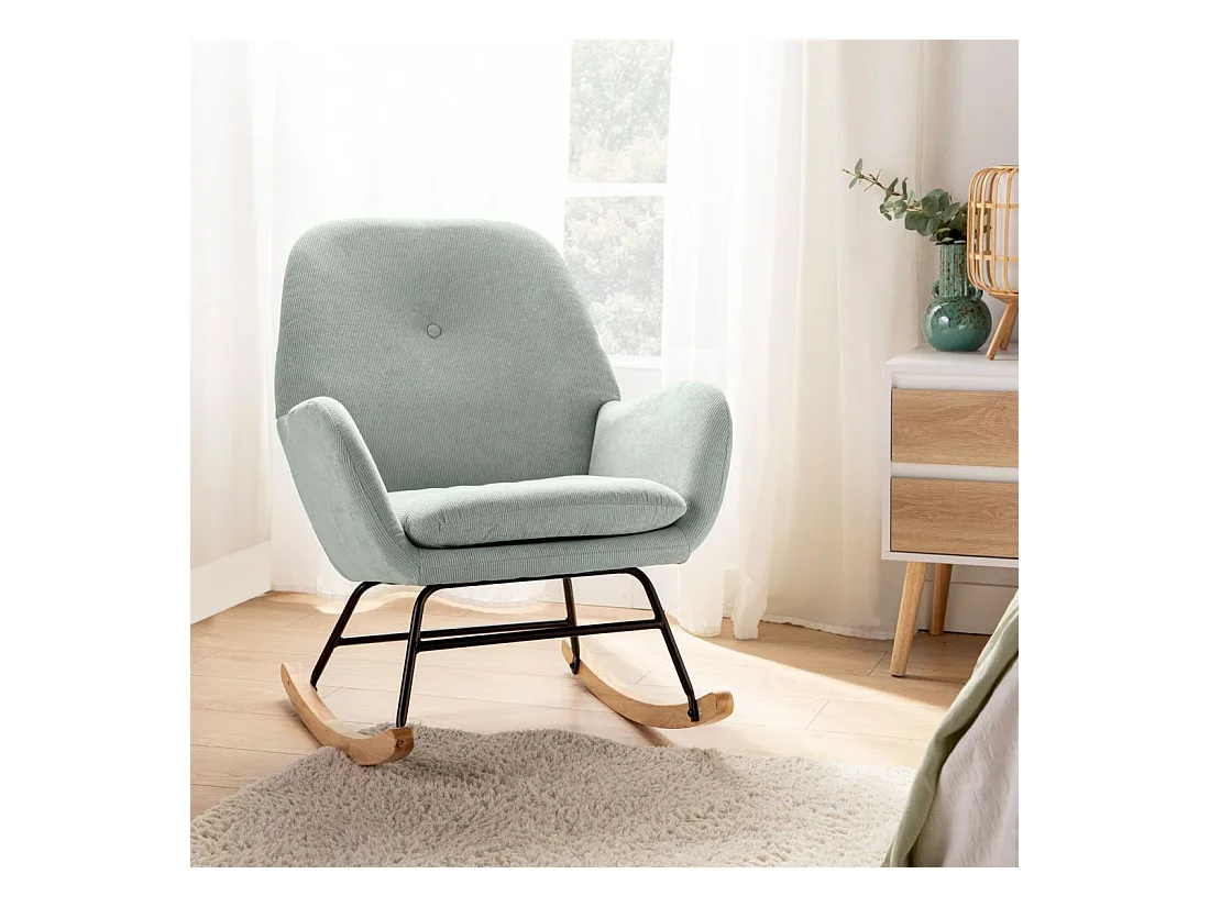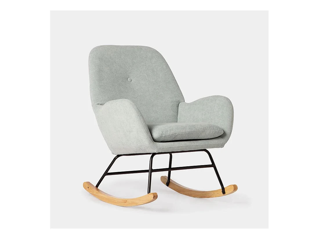 Silla mecedora patas de madera caucho terciopelo verde oscuro
