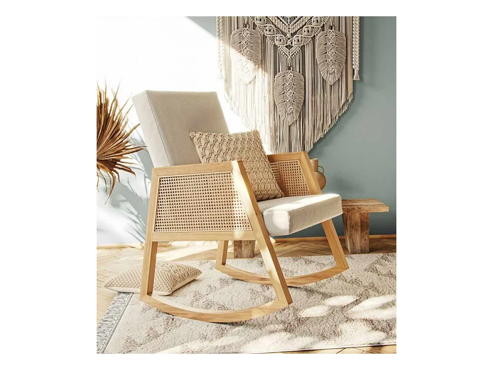 Butaca mecedora de 98x82x65 cm de estilo boho con estructura de madera y ratán Sofia