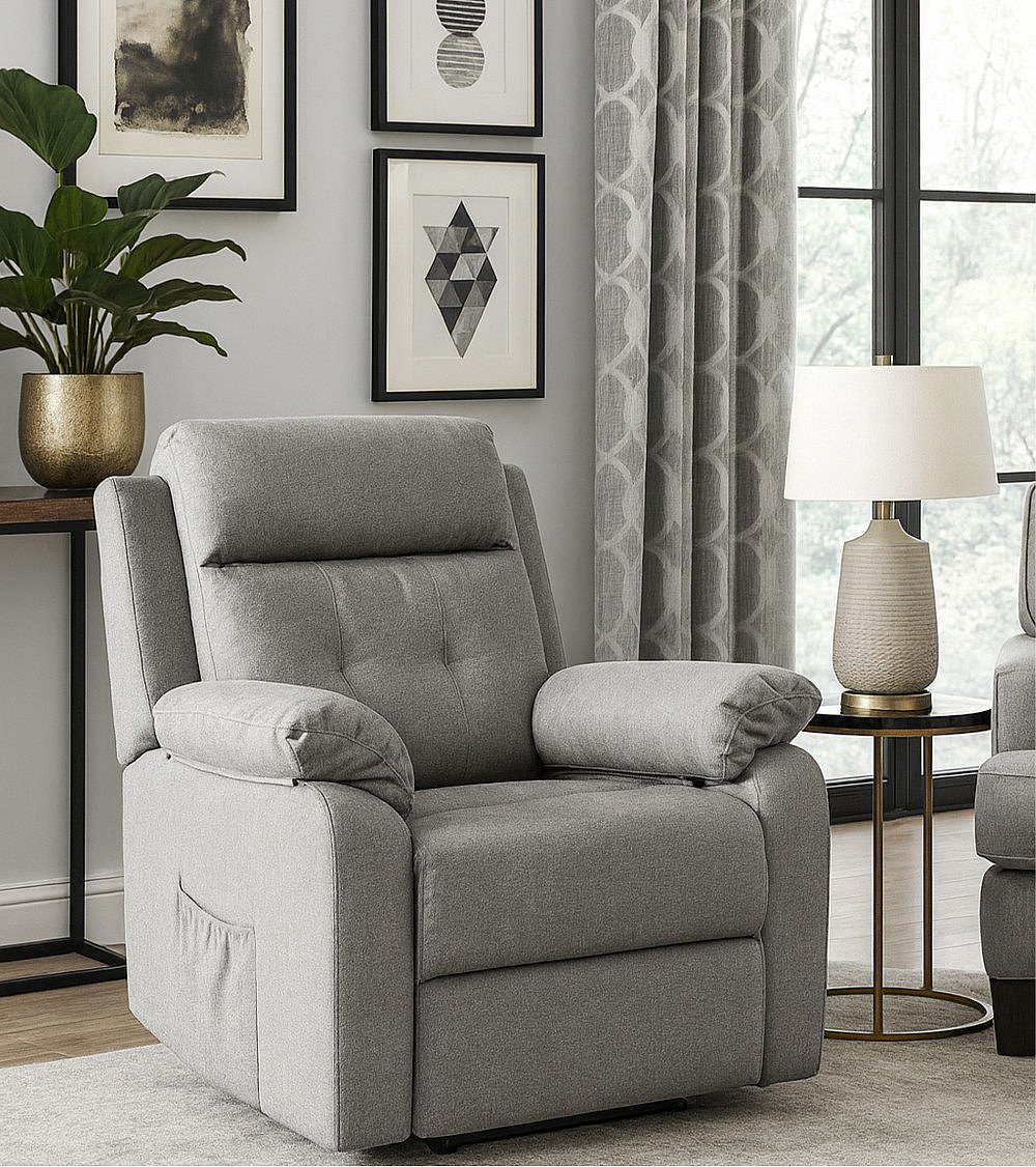 Butaca relax de 108x91x77 cm con motor eléctrico Power Lift de tela en color gris Nuba