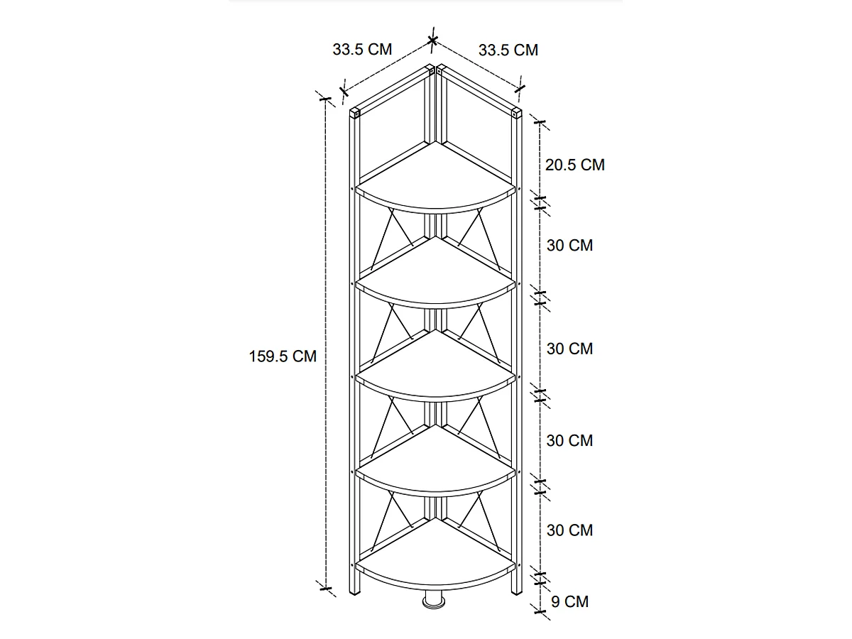 Buyqualia Estantería de rincón de Estilo Industrial con baldas en melamina Color safir y Estructura de Acero en Negro (Alto 160 / Ancho 34 / Fondo 34)