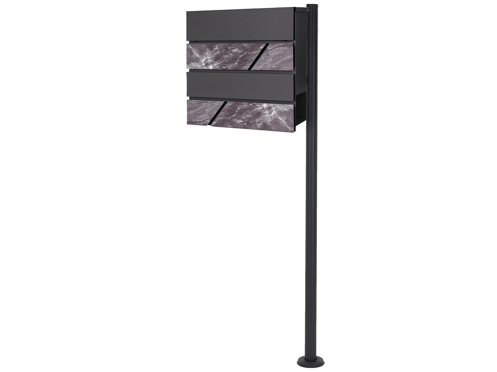 Buzón de pie con compartimento para periódicos antracita diseño de cebra mármol