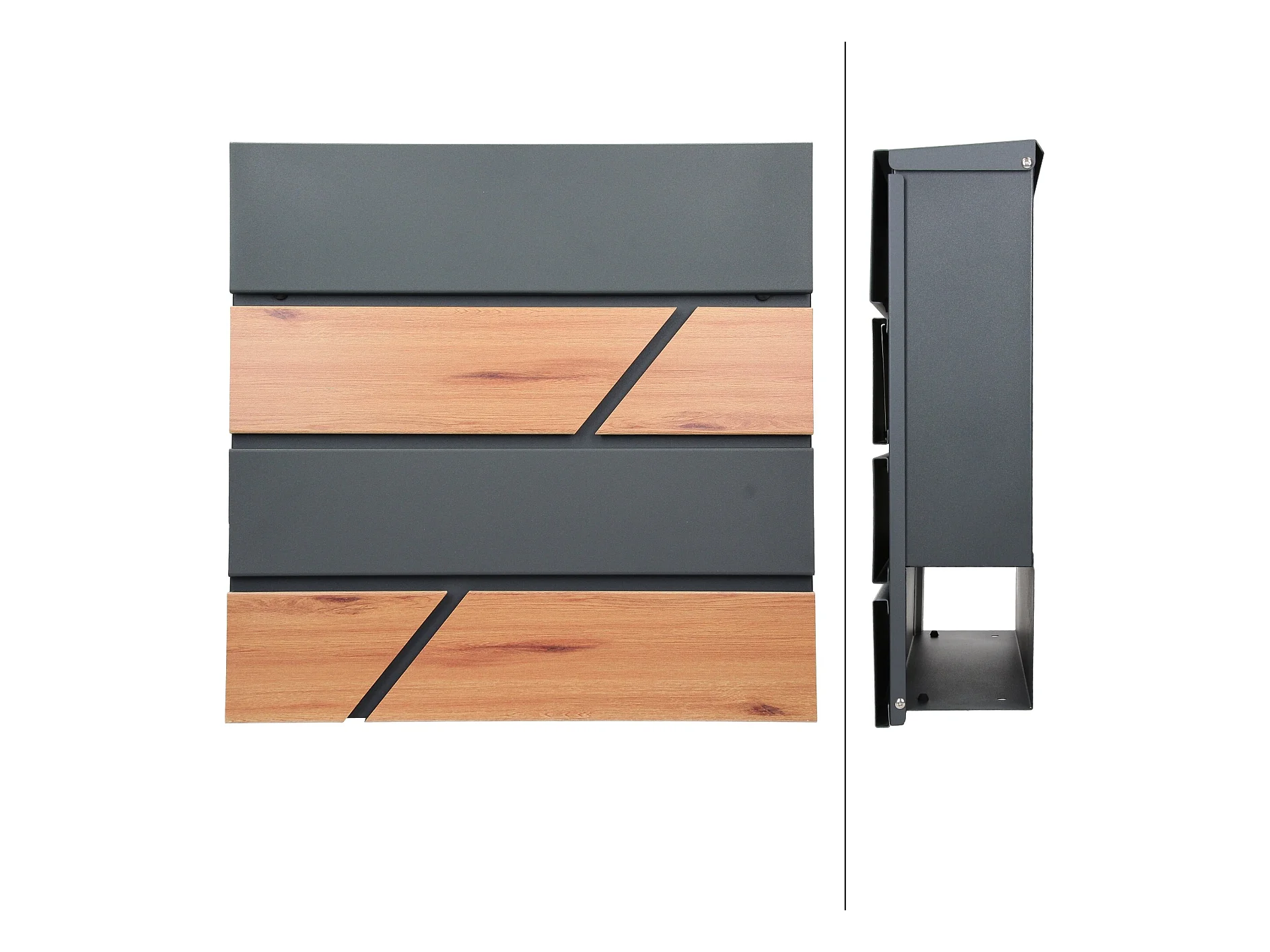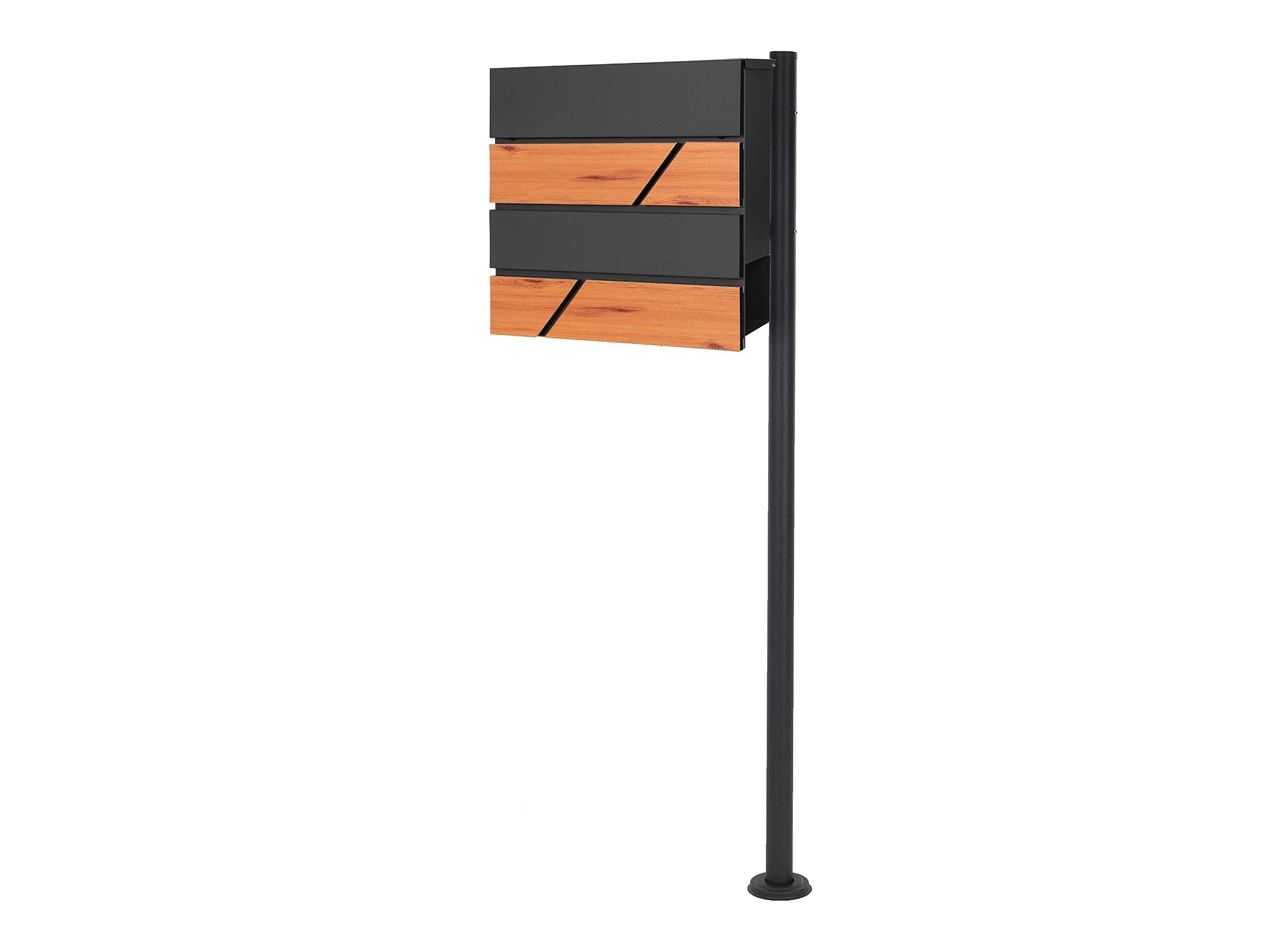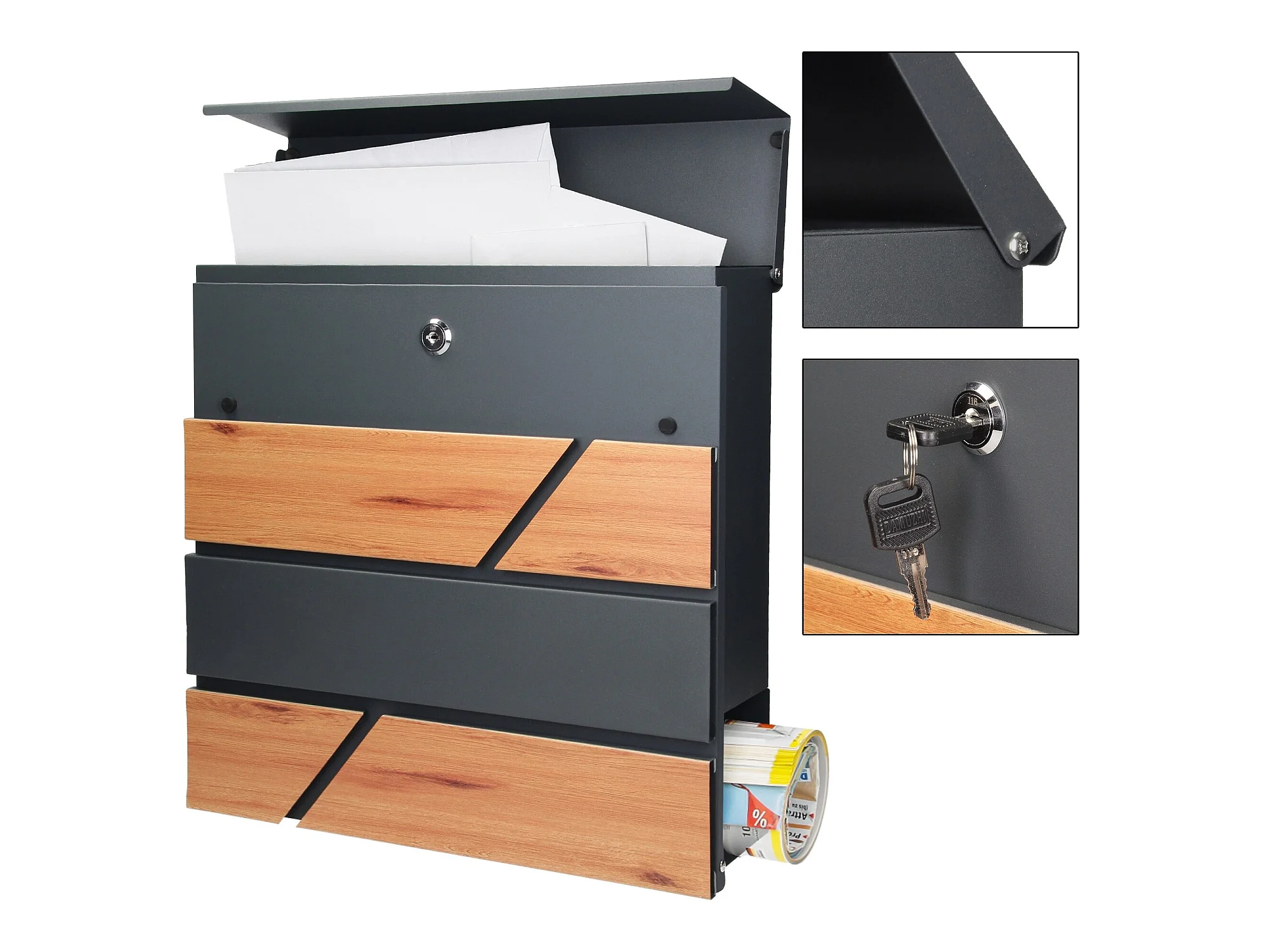 Buzón de pie con compartimento para periódicos antracita diseño de madera