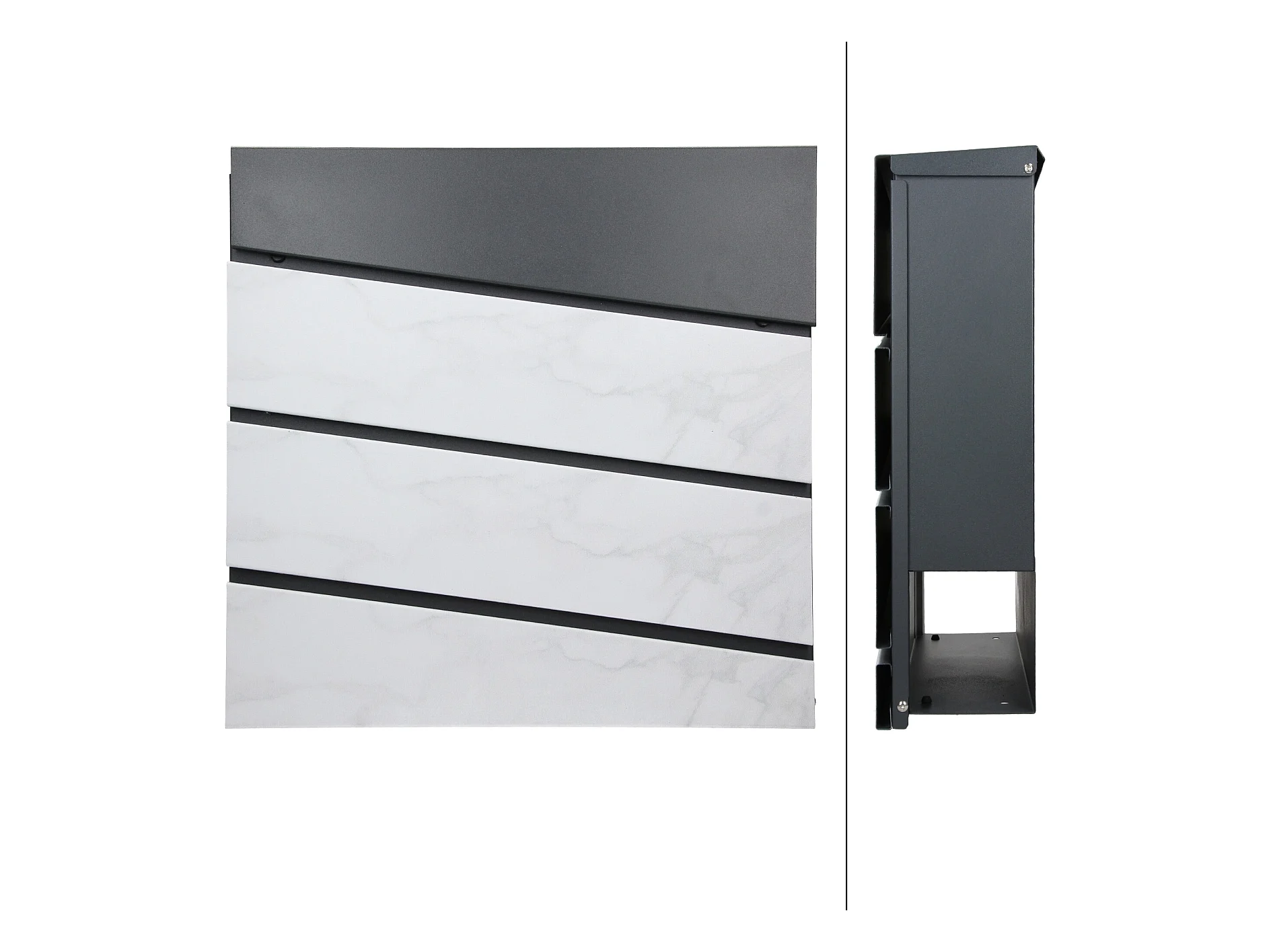 Buzón de pie con compartimento para periódicos antracita diseño mármol blanco