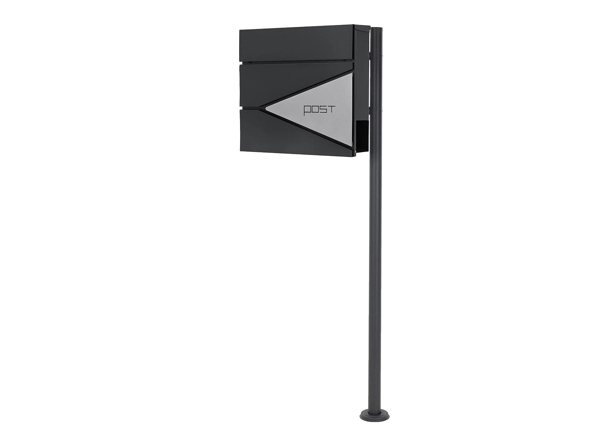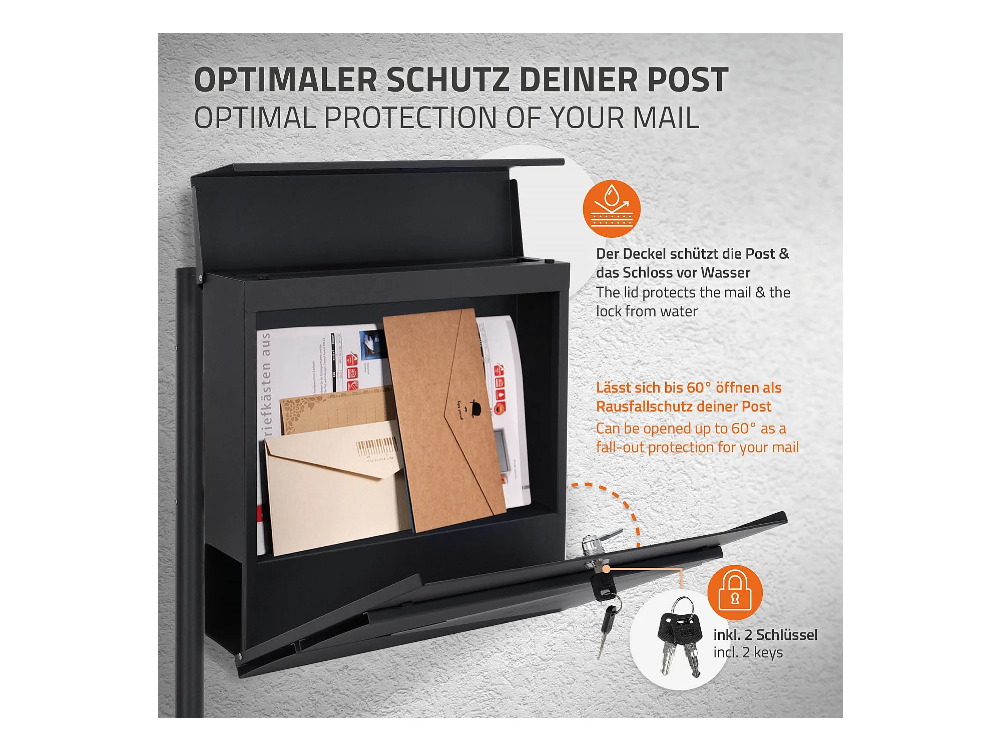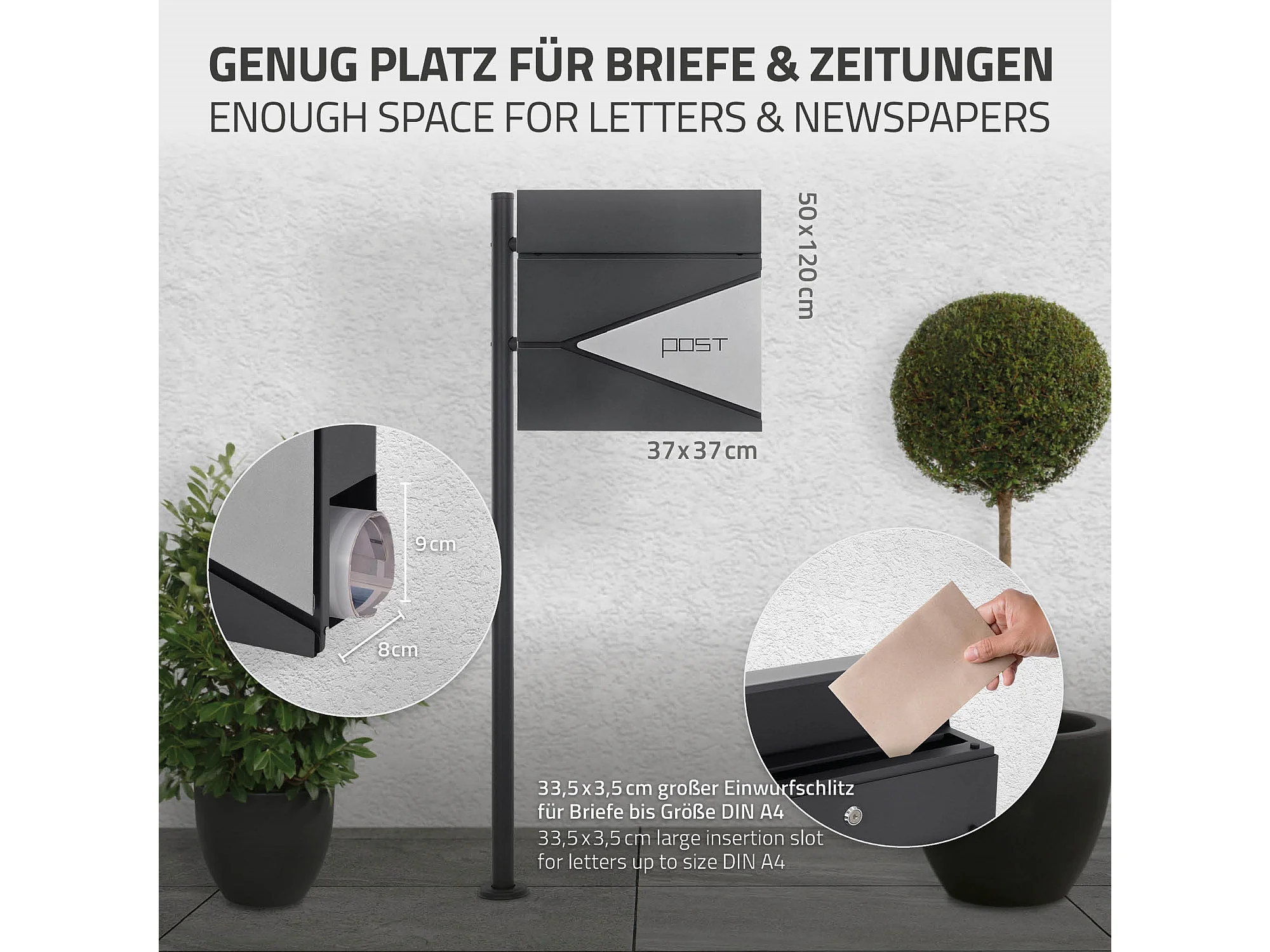 Buzón para cartas y periódico 37x37cm de acero con soporte 120cm lateral moderno