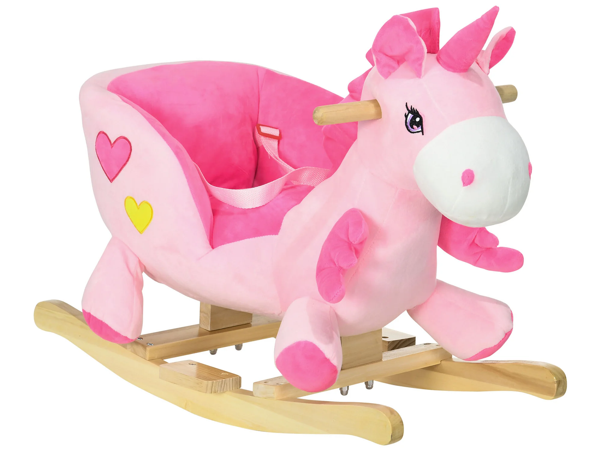 Caballo balancín para niños rosa 65x32.5x61 cm HOMCOM