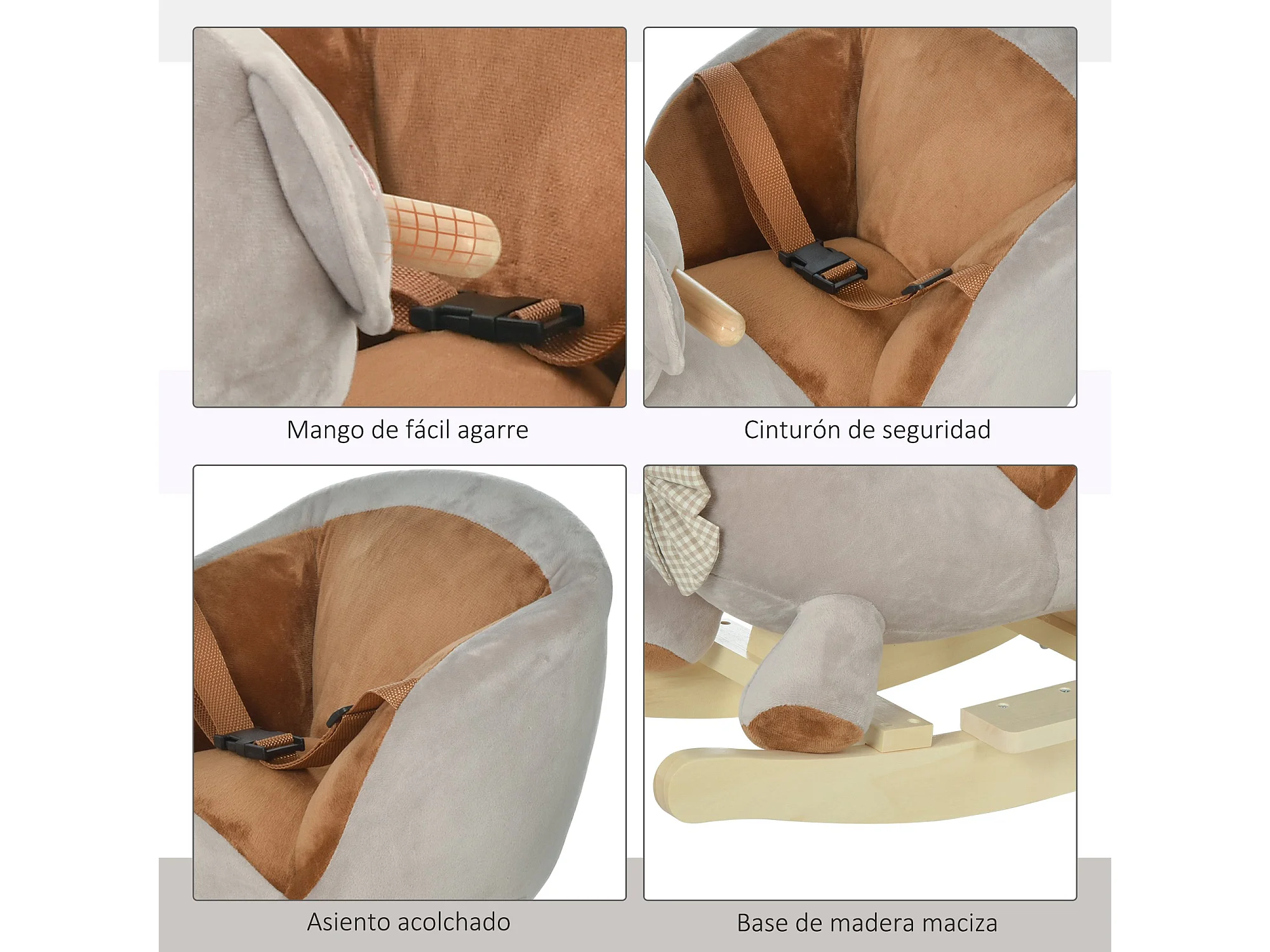 Caballo balancín de bebé gris 60 x 33 x 50cm HOMCOM
