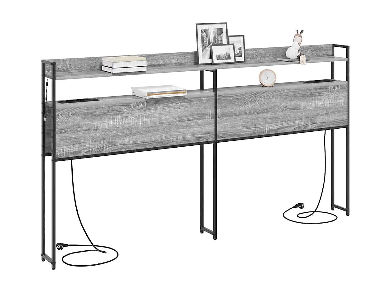 Cabecero de Almacenamiento con Estación de Carga Gris sonoma