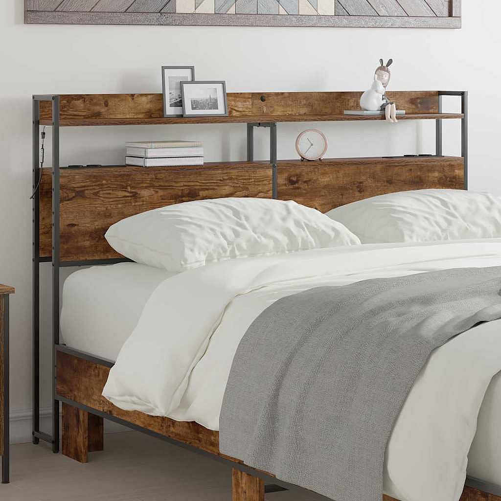 Cabecera de almacenamiento con estante Roble ahumado 150 cm