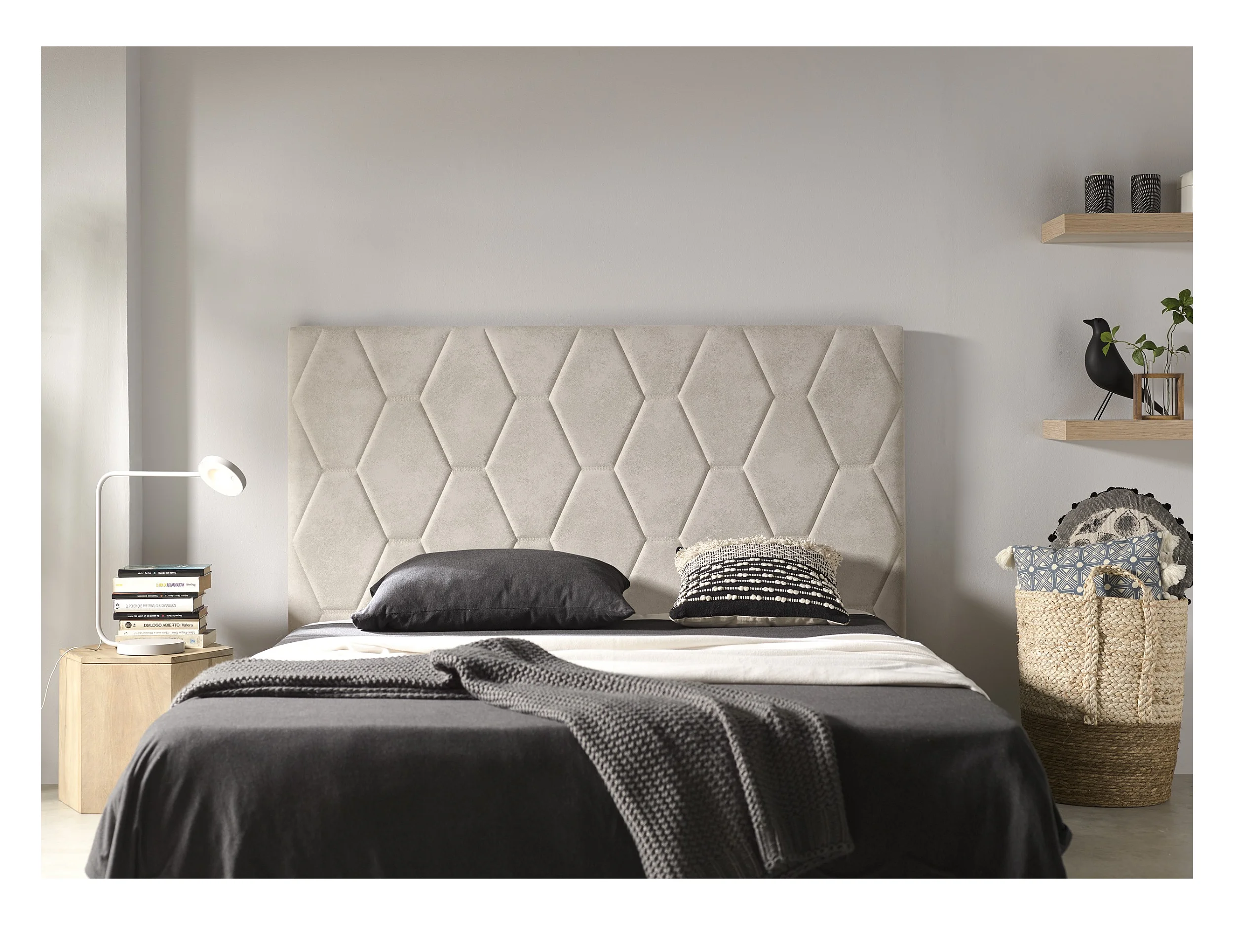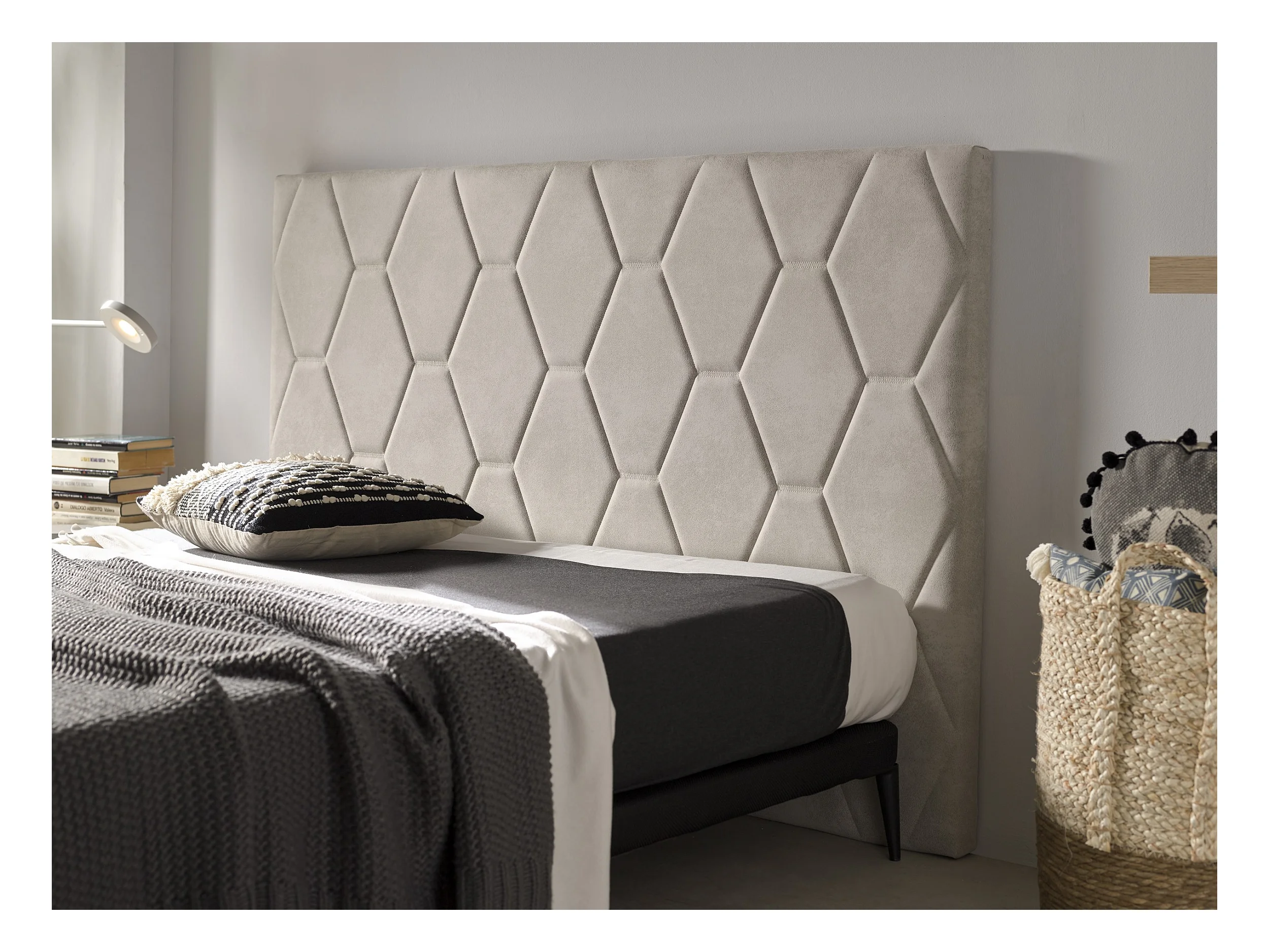 Cabecero Ágata para Cama de 140 de Tela Blanco Roto 154x115x8..