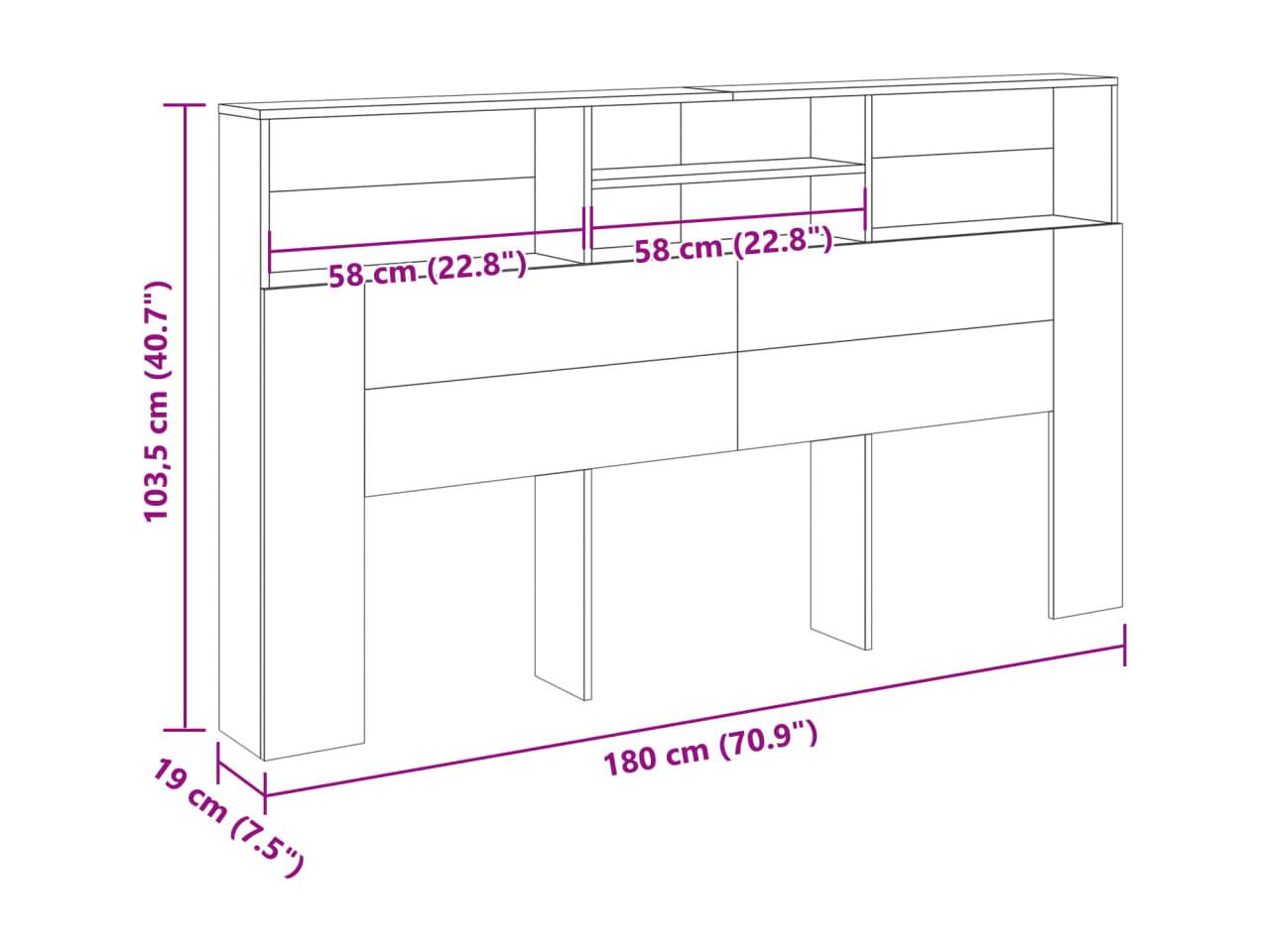 Cabecera de almacenamiento con estante Roble Sonoma 180 cm