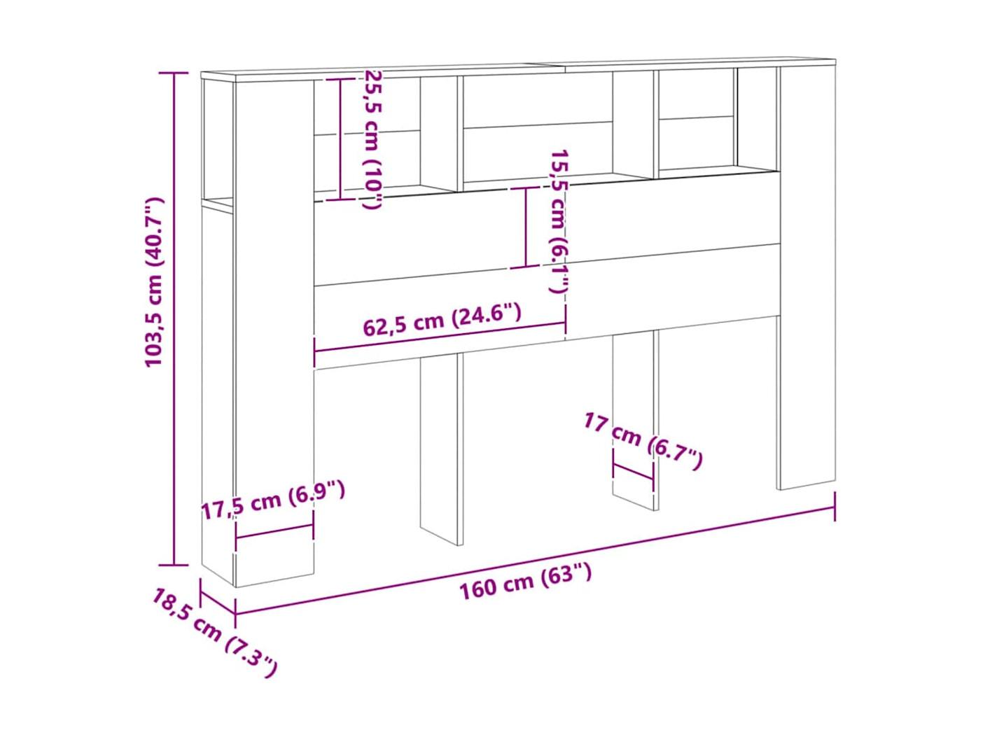 Cabecero armario madera ingeniería envejecida 160x18,5x103,5 cm