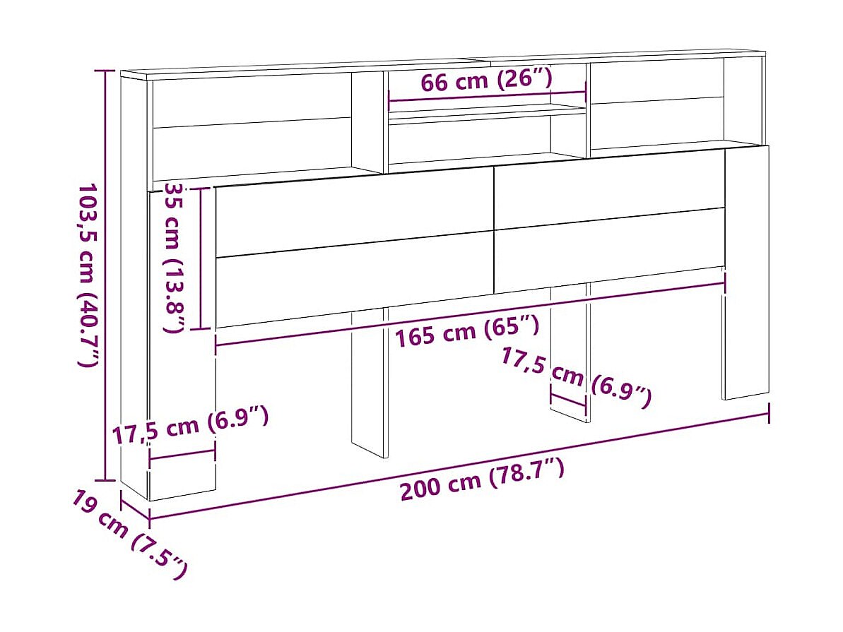 Cabecera de almacenamiento con estante Roble ahumado 200 cm