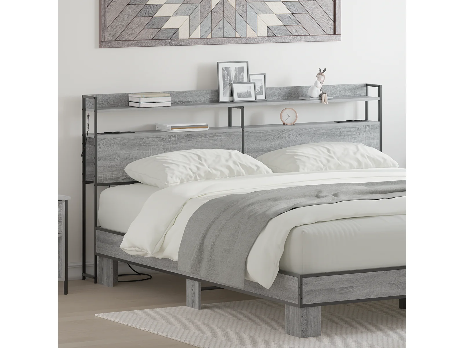 Mueble cabecero | Cabezal de cama | Cabecero de Almacenamiento con Estación de Carga Gris sonoma