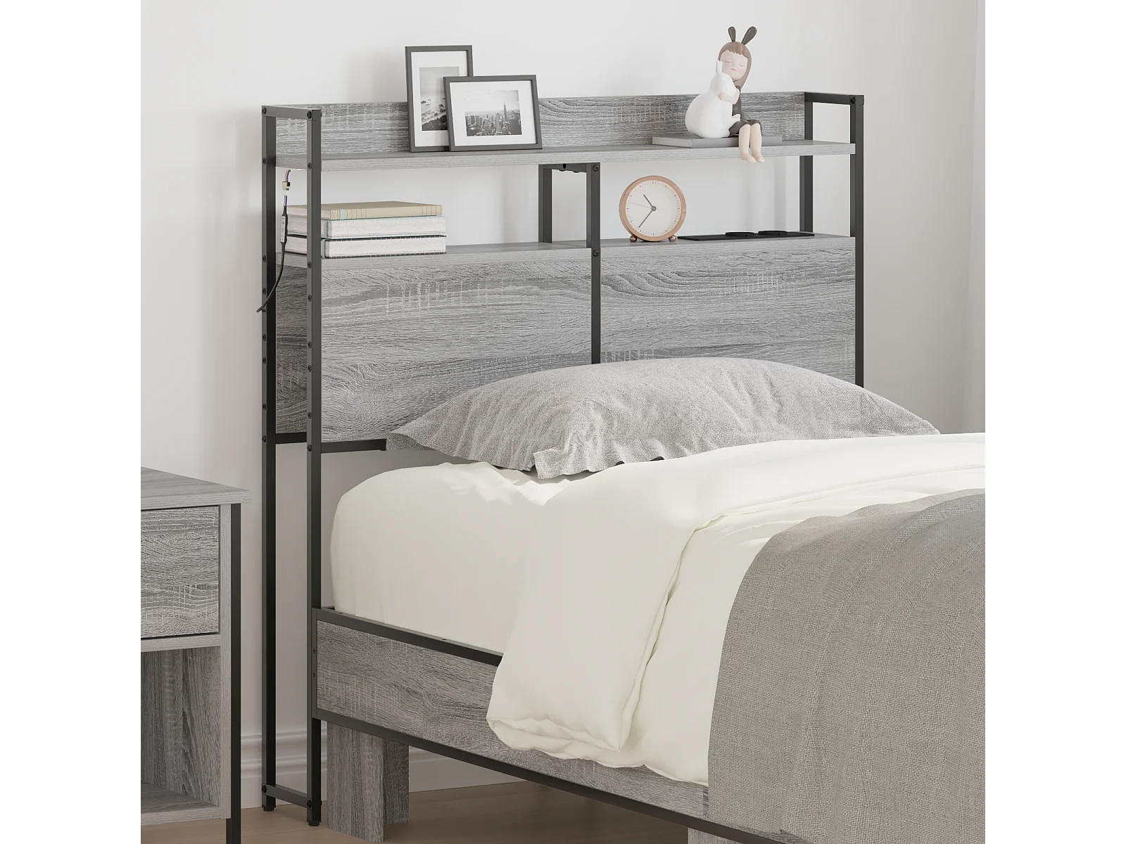 Mueble cabecero con almacenamiento | Cabecera de almacenamiento con estante Gris sonoma 90 cm