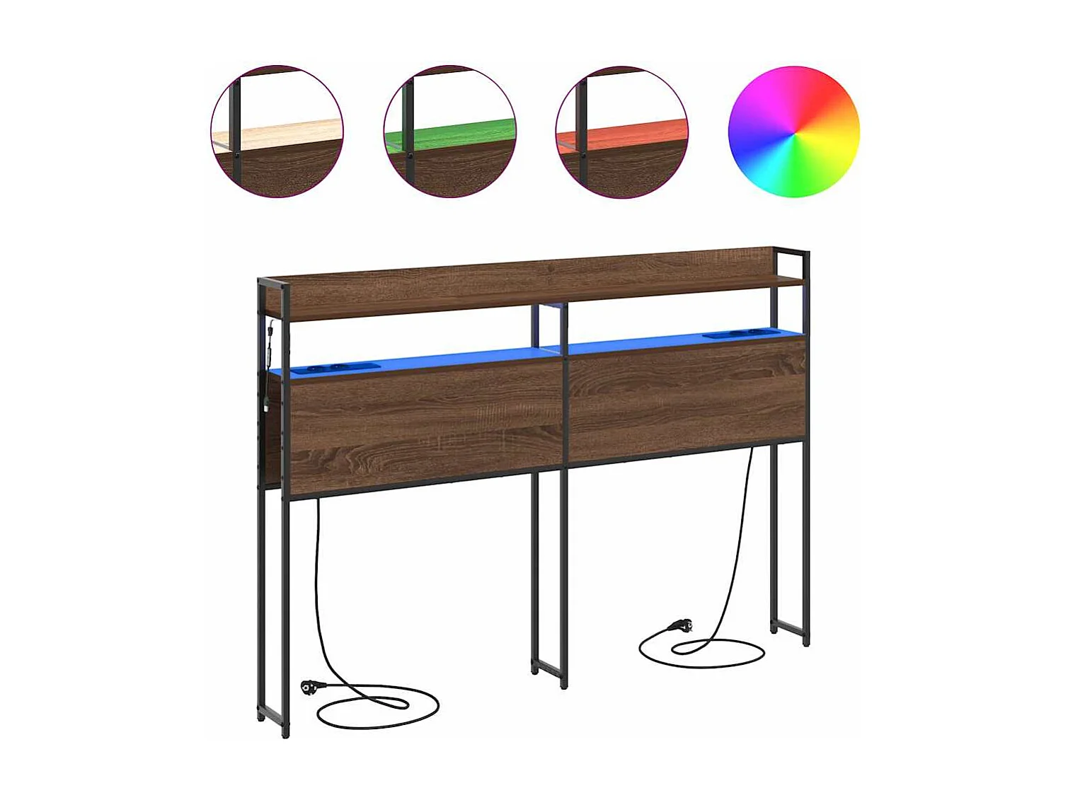 Mueble cabecero | Cabezal de cama | Cabecero de Almacenamiento con Estación de Carga Marrón roble