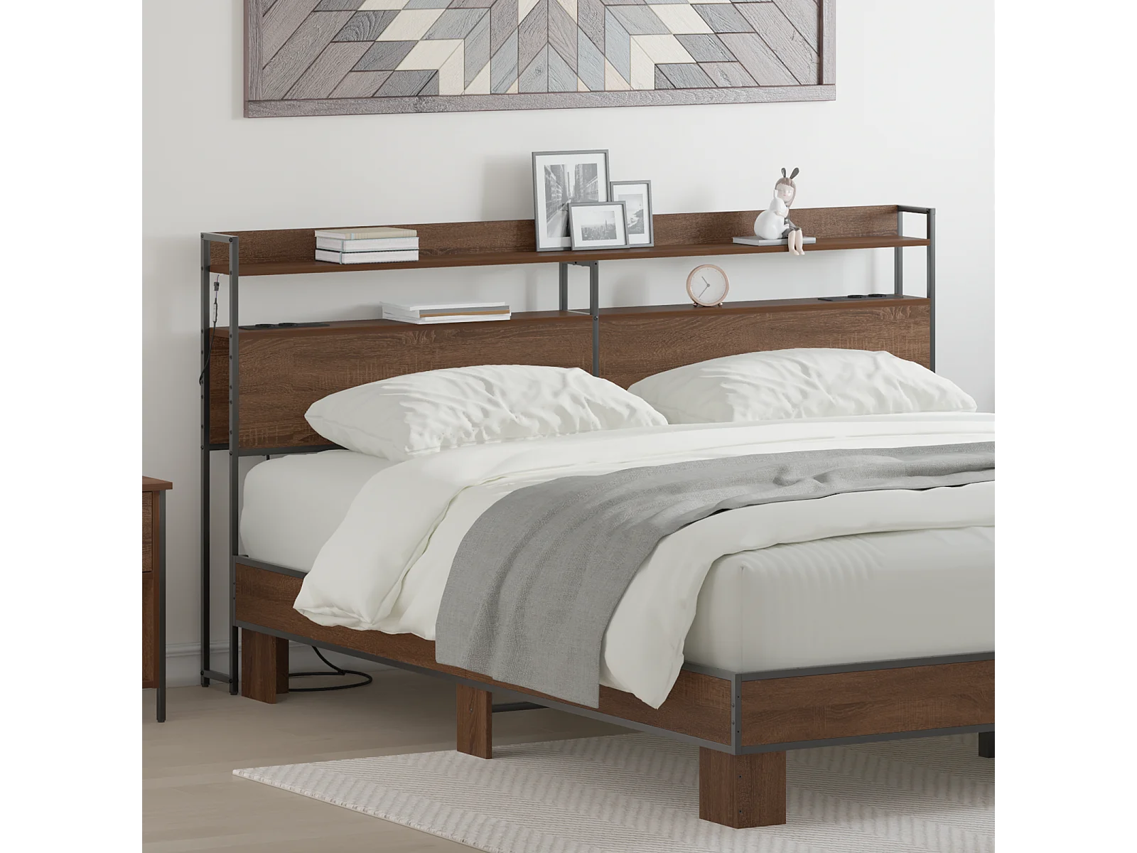 Cabecero | Cabezal de Cama | Mueble cabecero con estante Marrón roble 200 cm Madera contrachapada