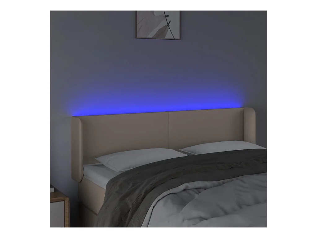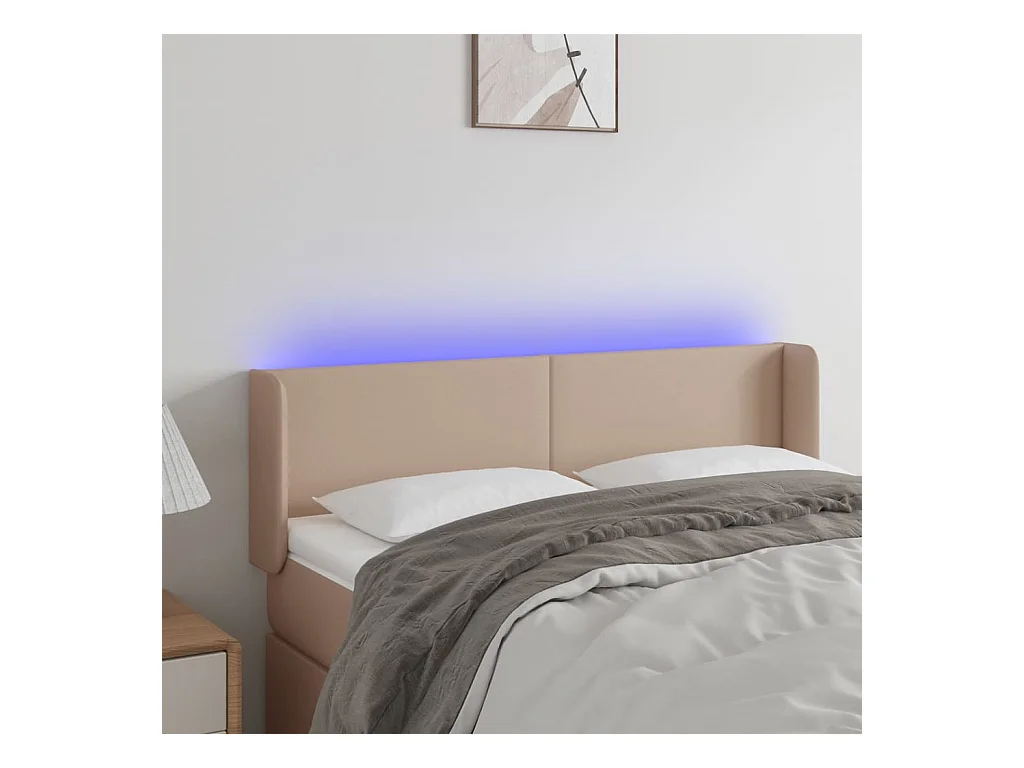 Cabecero | Cabezal de Cama | Mueble cabecero con LED cuero sintético capuchino 147x16x78/88 cm