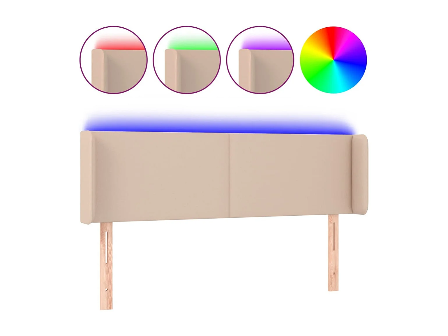 Cabecero | Cabezal de Cama | Mueble cabecero con orejas cuero sintético capuchino 147x16x118/128 cm