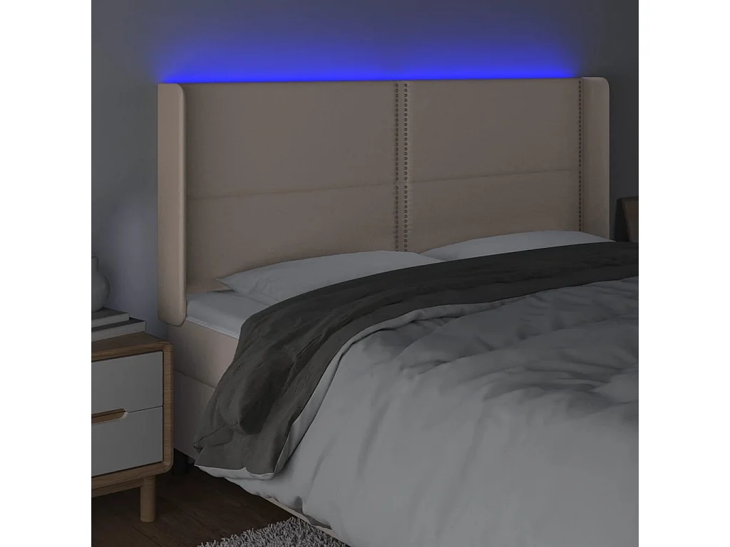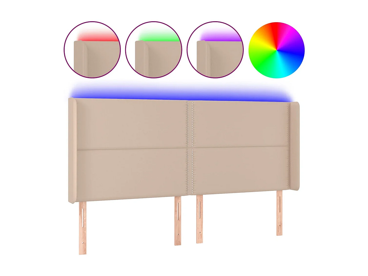 Cabecero | Cabezal de Cama | Mueble cabecero con LED cuero sintético capuchino 183x16x118/128cm