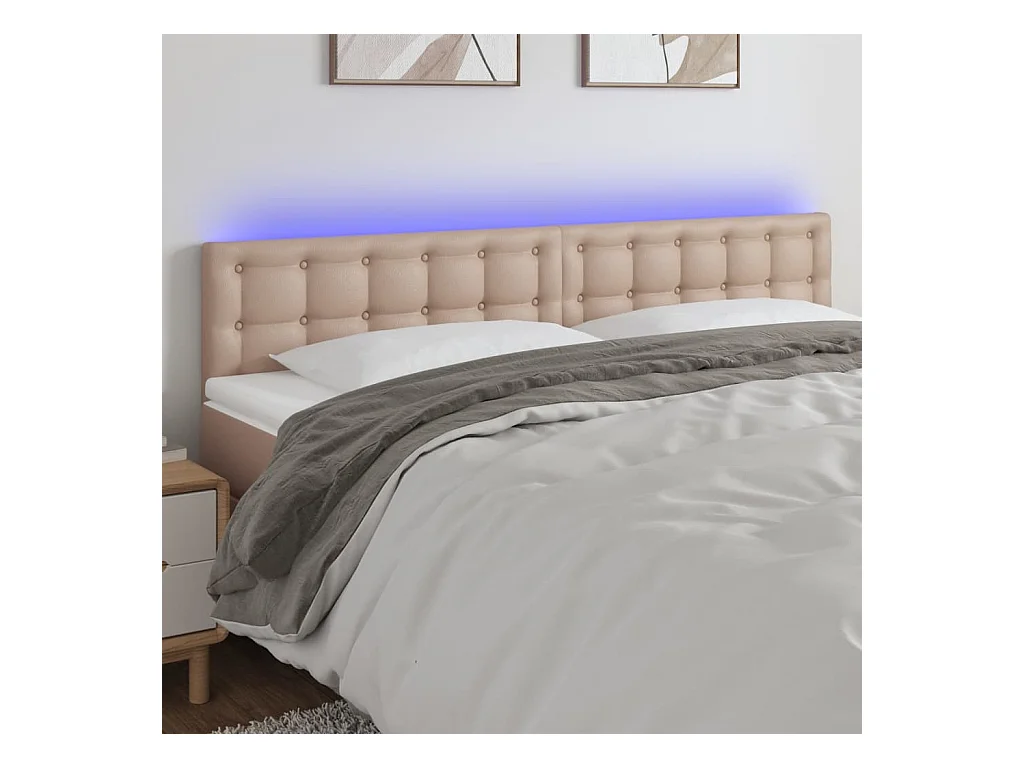 Cabecero | Cabezal de Cama | Mueble cabecero con LED cuero sintético color capuchino 180x5x78/88 cm